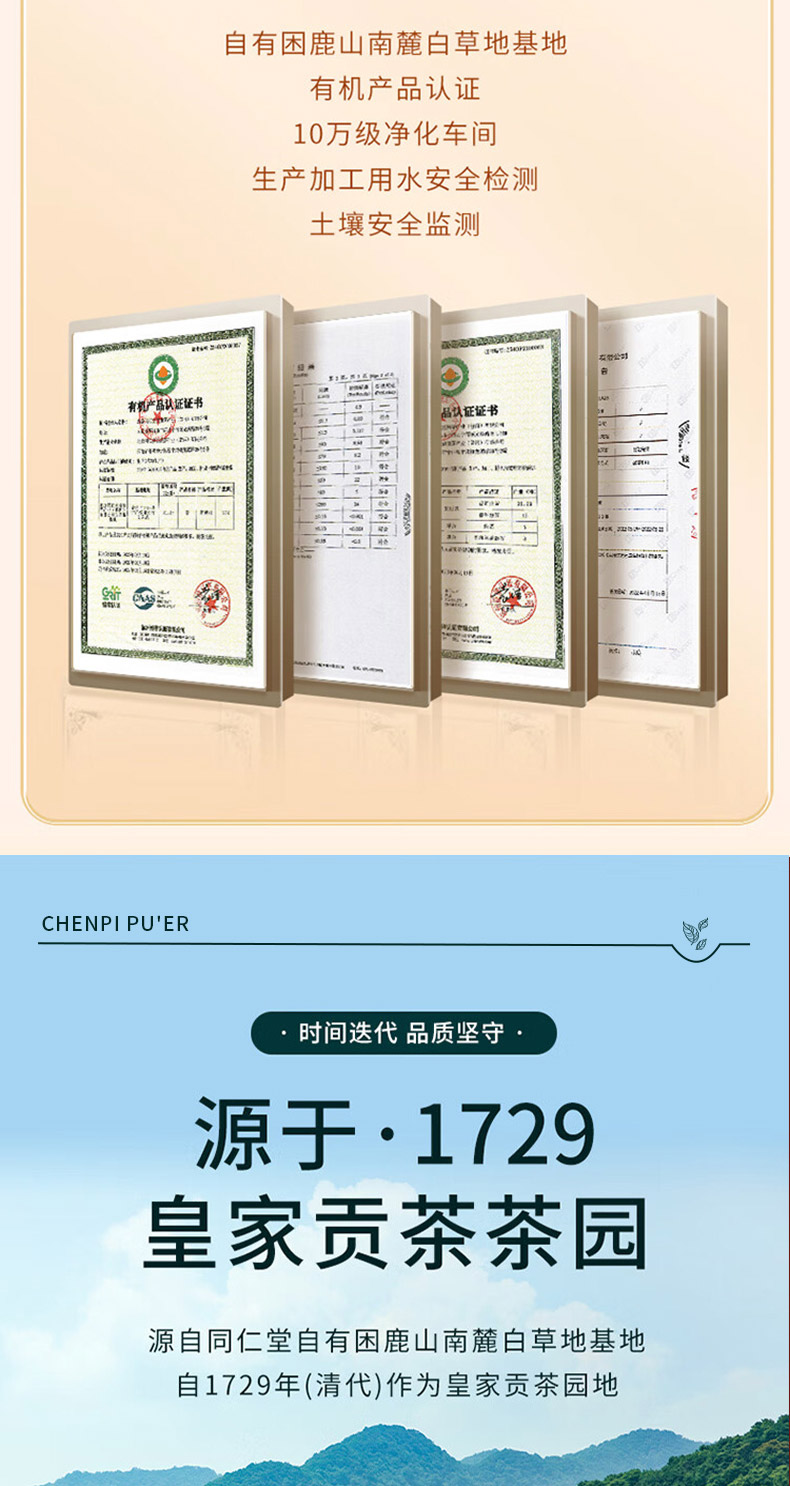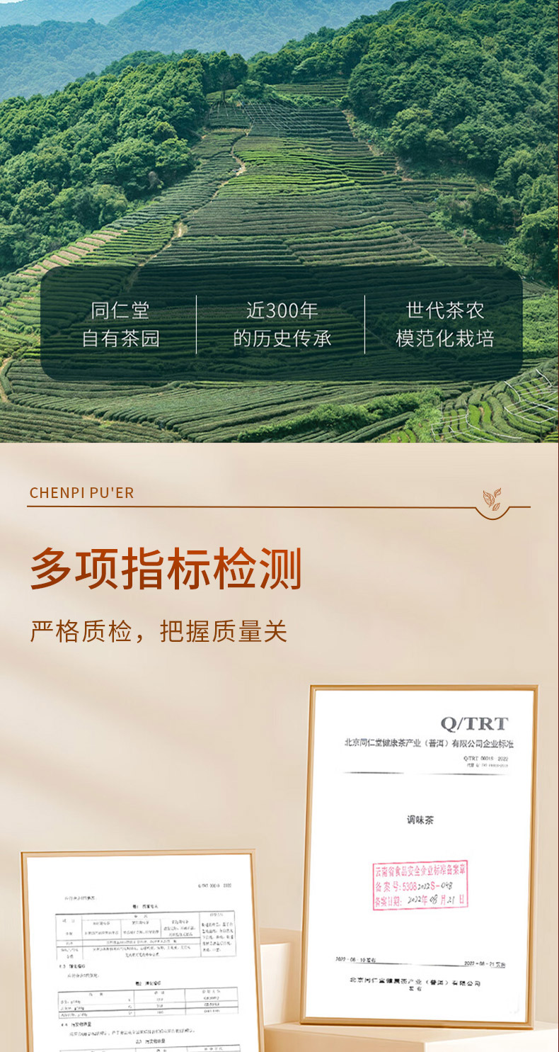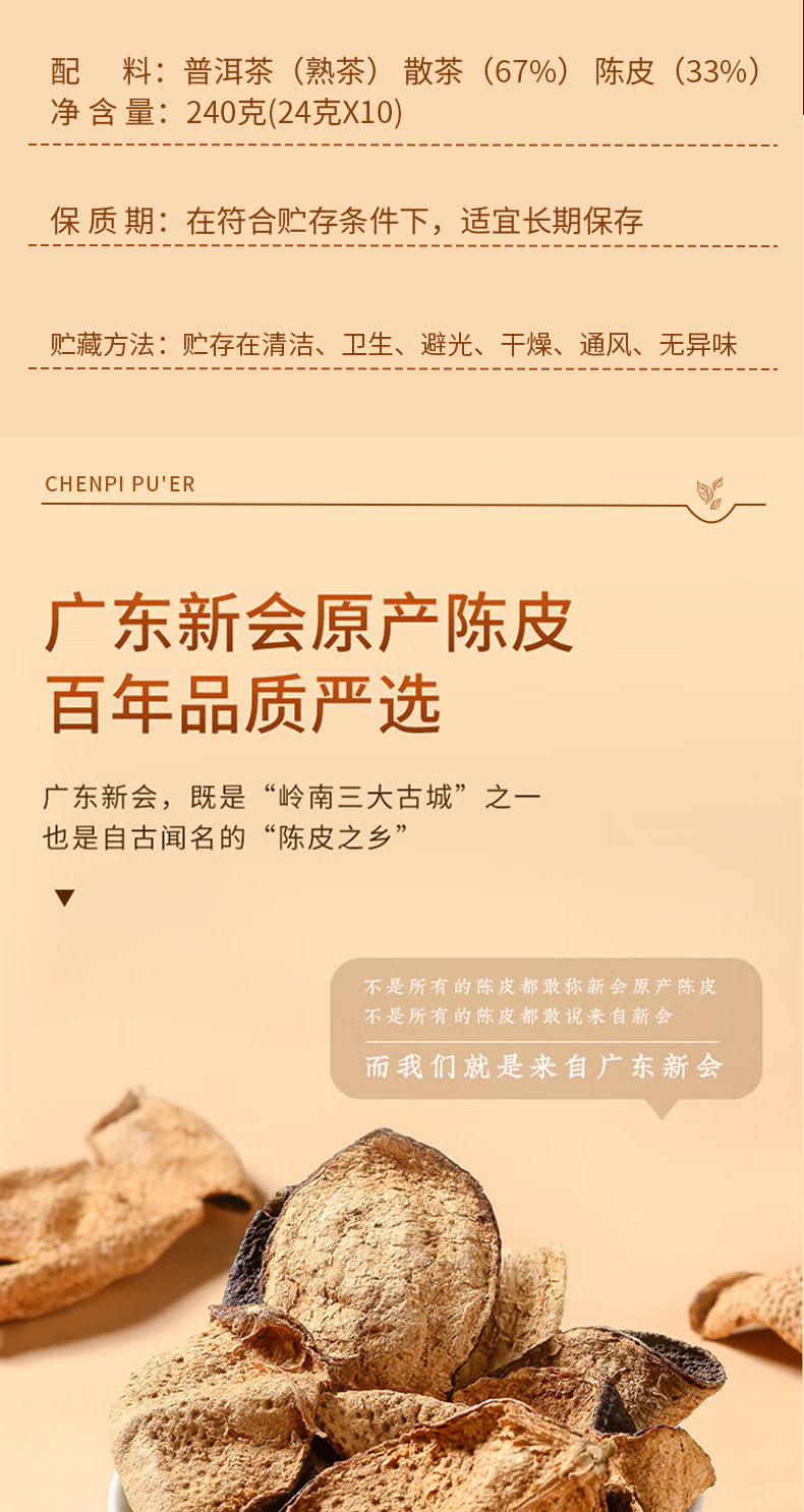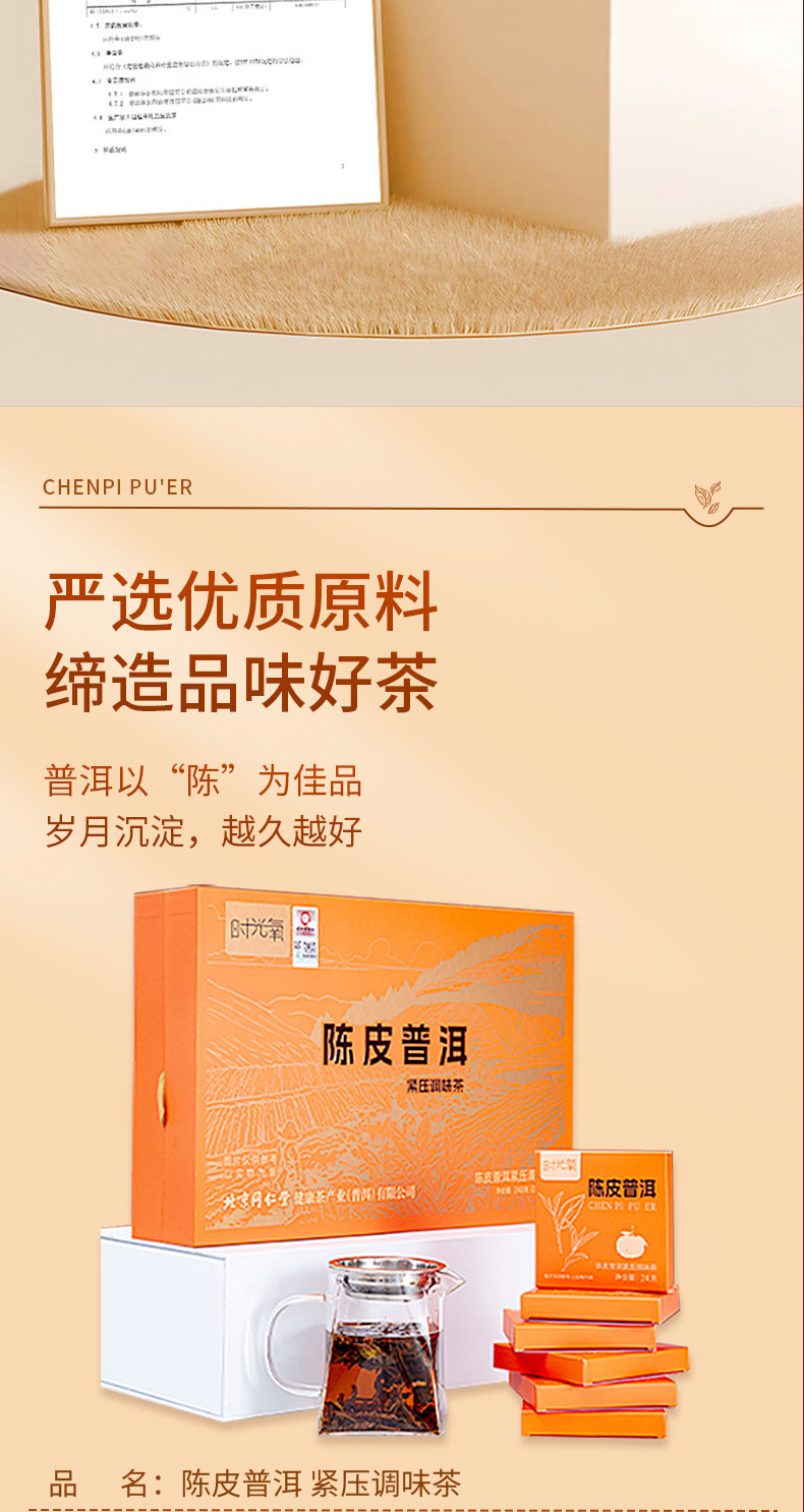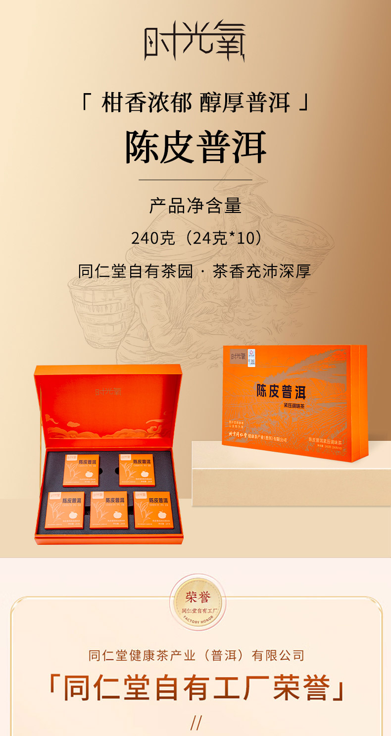 北京同仁堂时光氧陈皮普洱紧压调味茶240克(24克x10)/盒