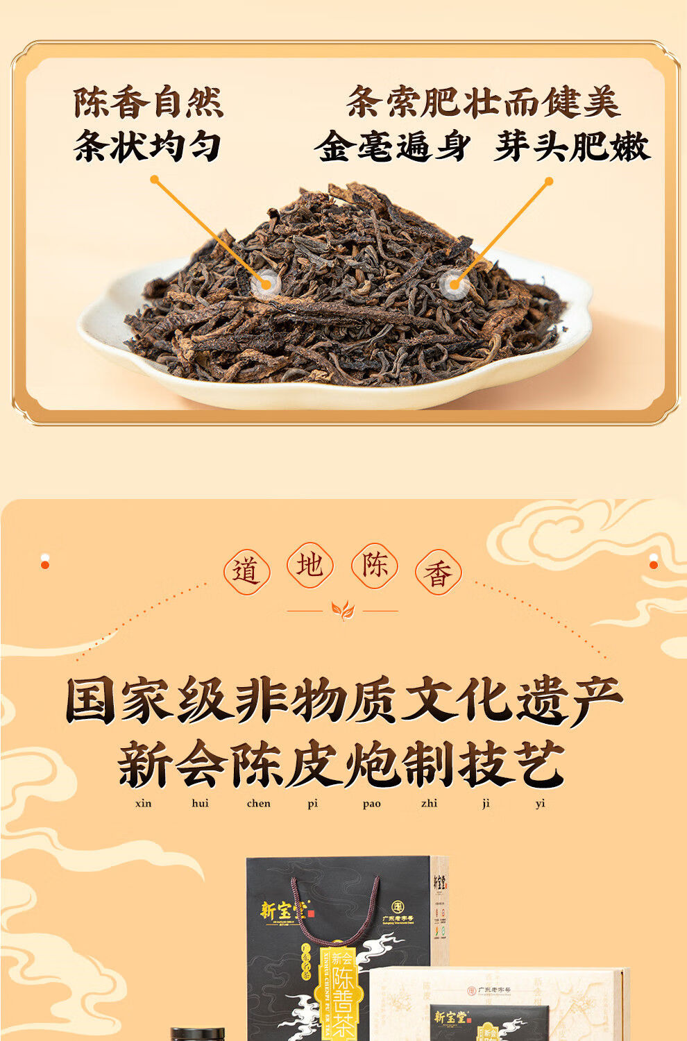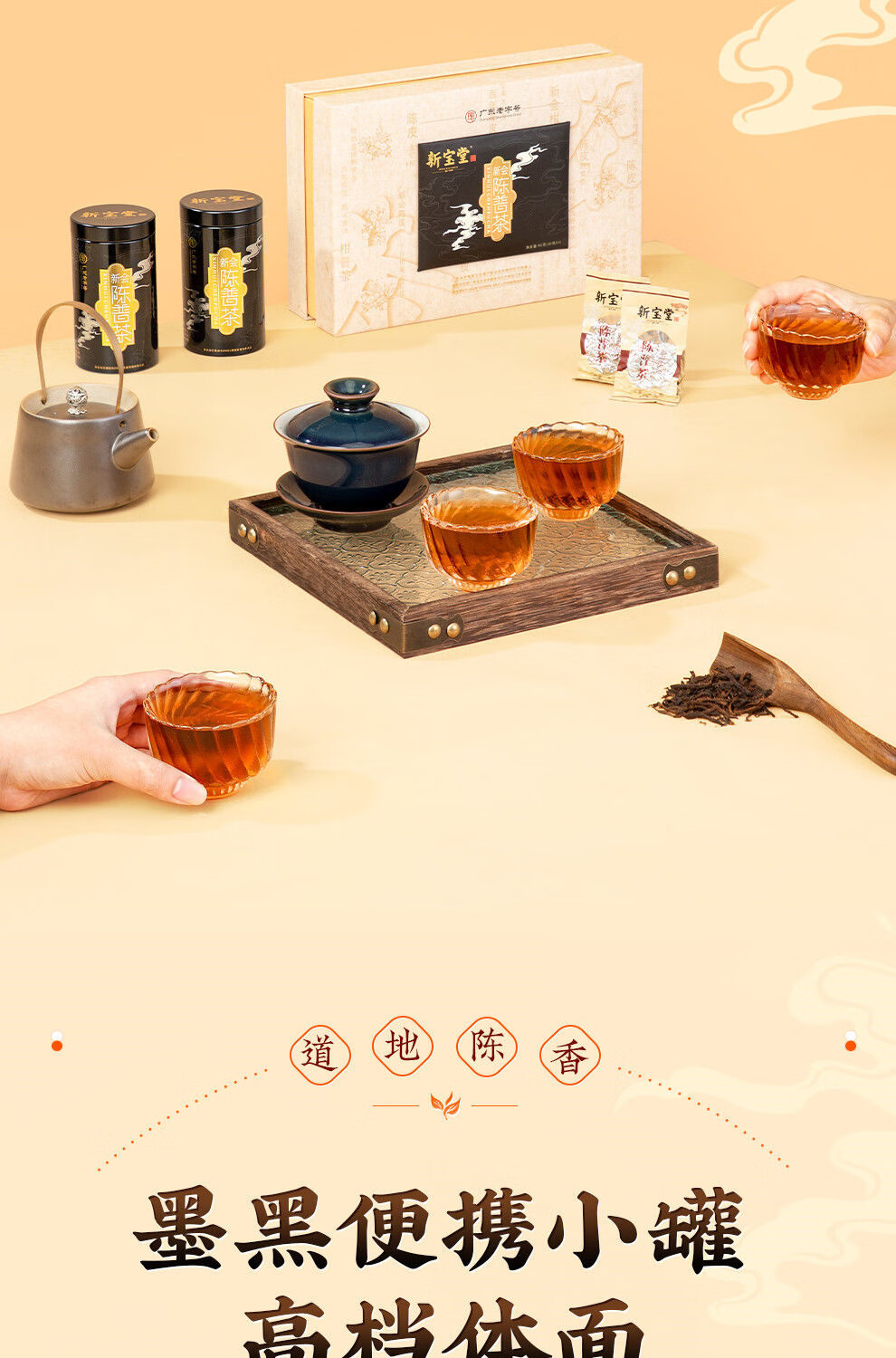 【新宝堂】 二十年陈皮 普洱茶铁罐礼盒90g