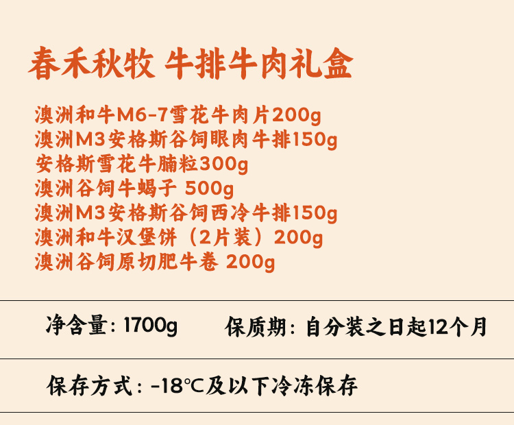 春禾秋牧可溯源高品质畅销牛肉礼包1700g