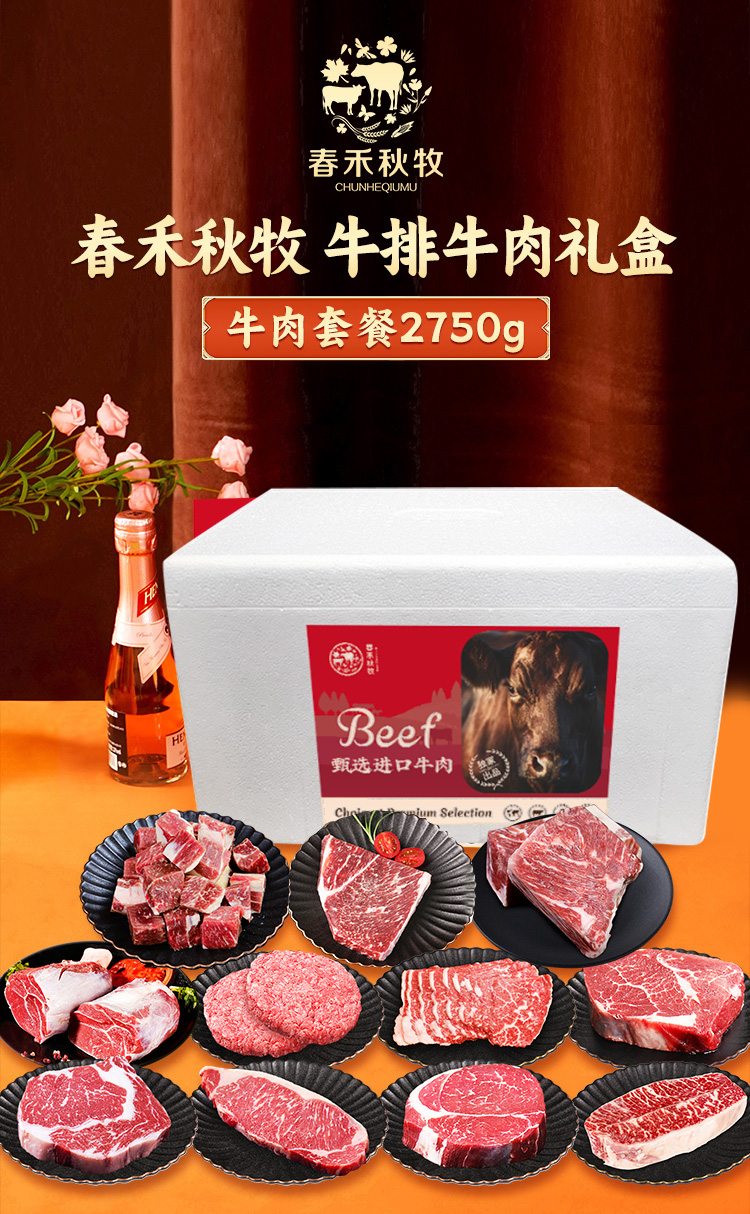 春禾秋牧可溯源高品质畅销牛肉礼包2750g