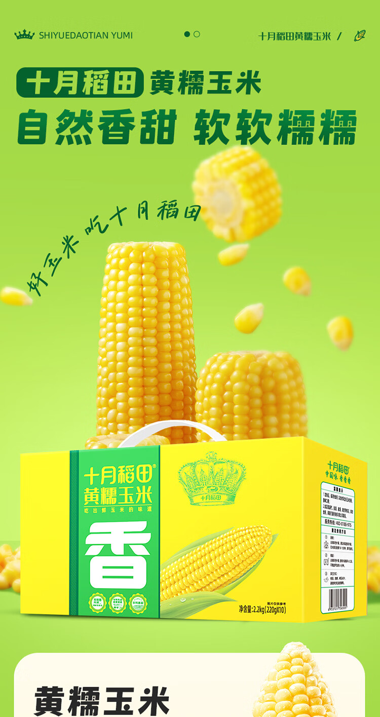 十月稻田鲜食黄糯玉米2.2kg