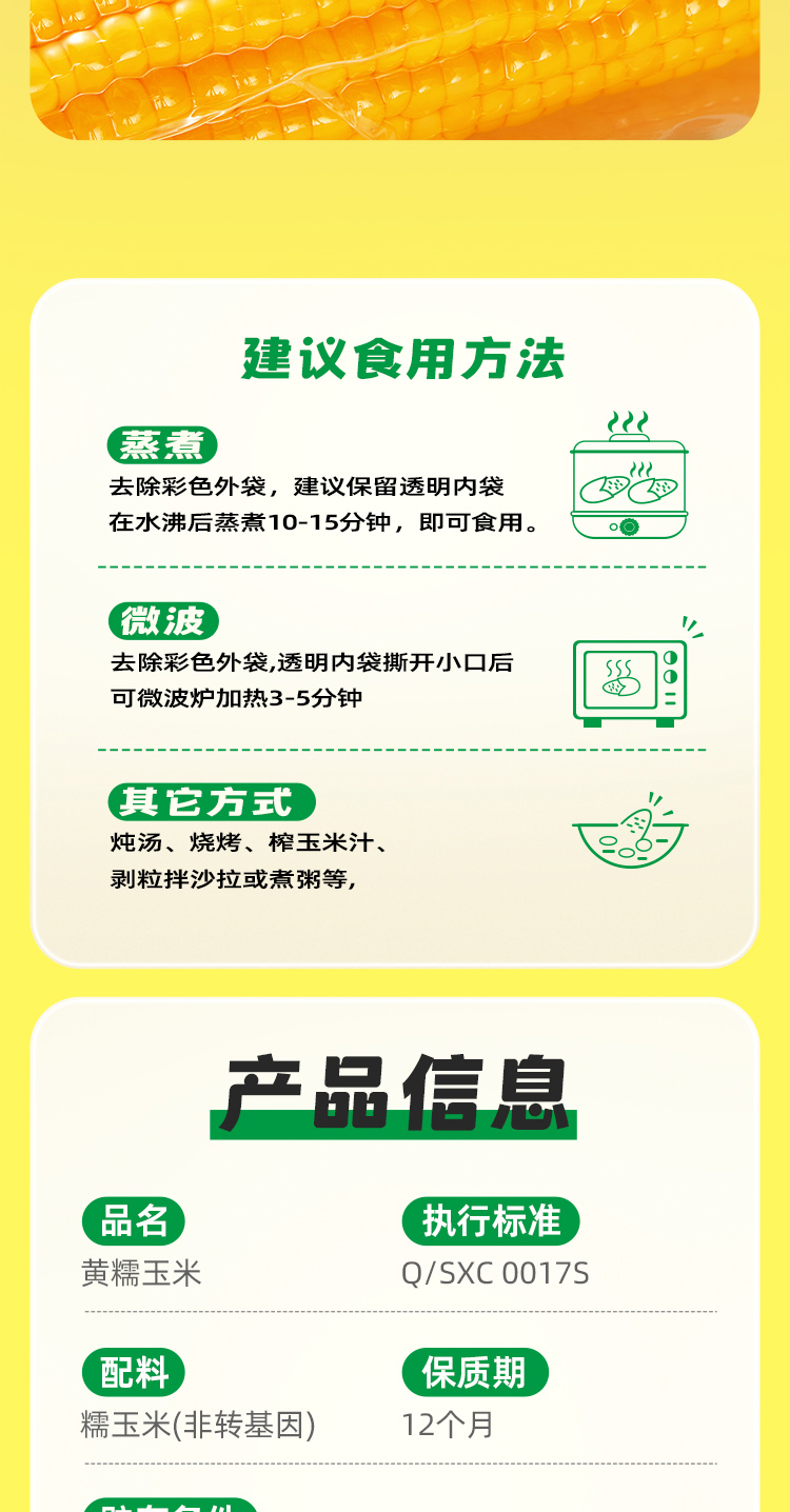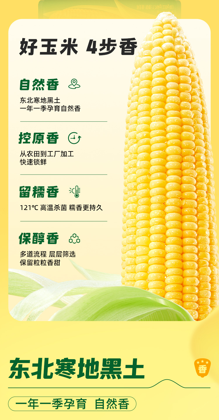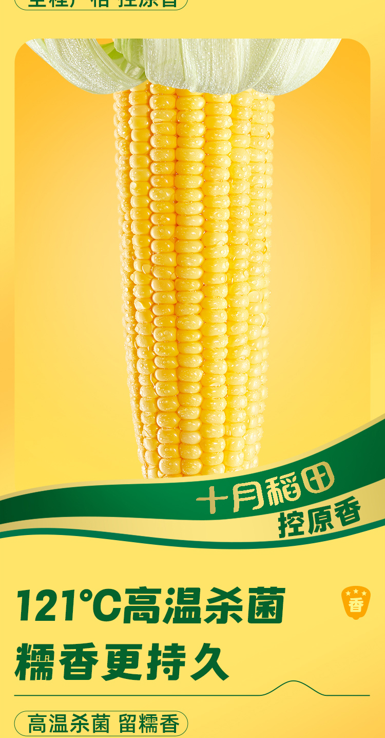 保留糯米鲜甜原味,软糯香甜,玉米个头大,每个净含量超过200g,玉米颗粒饱满,弹润黏糯,好吃到停不下来