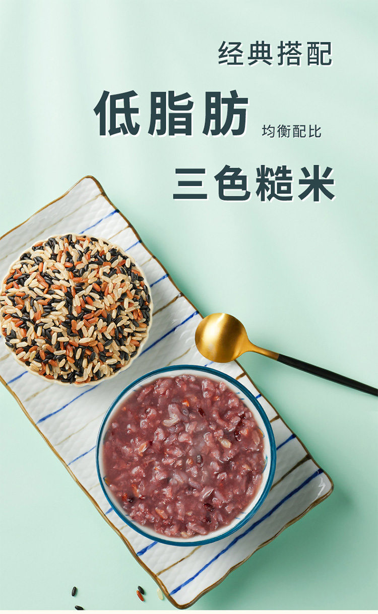低脂组合,糙米玉米双搭配。糙米软糯清香略带嚼劲,玉米软糯香甜。自然原香,安心之选。