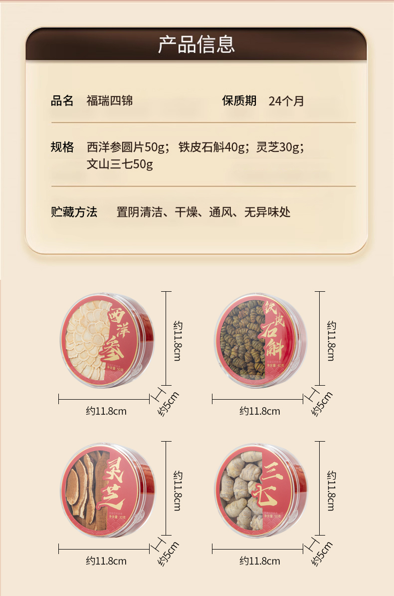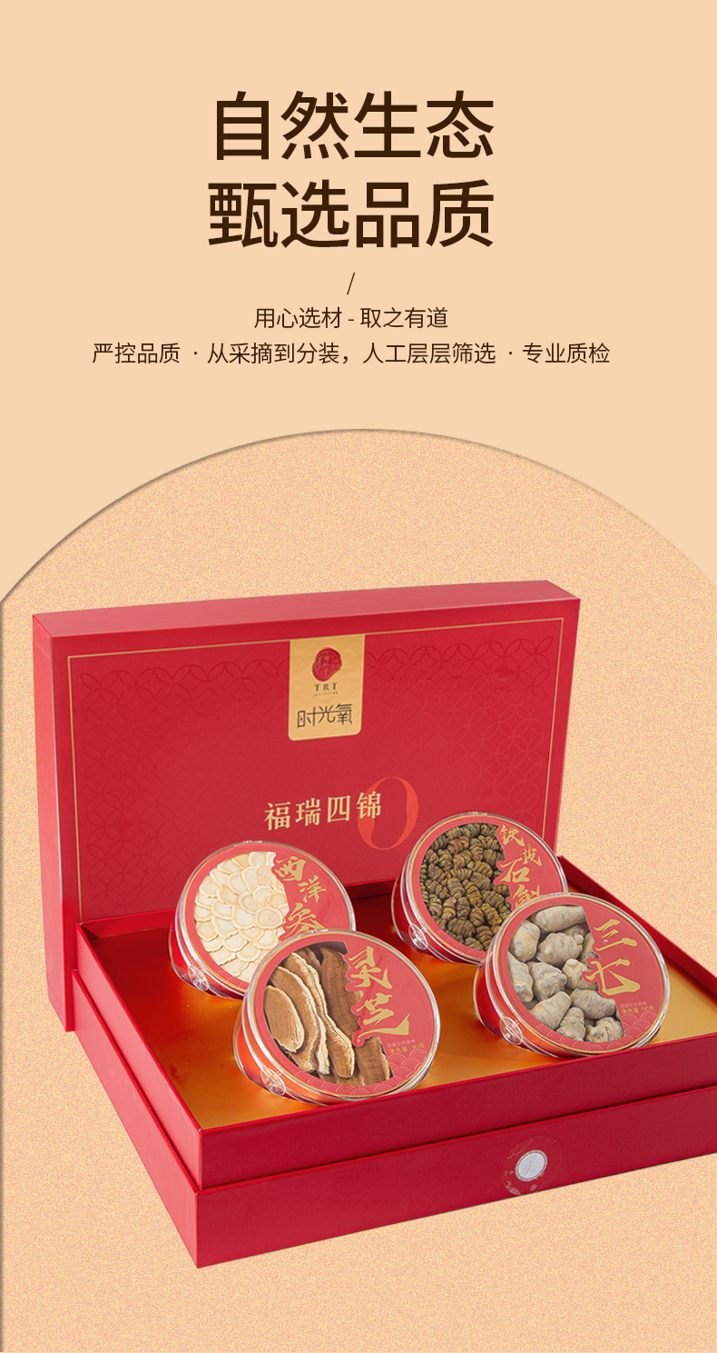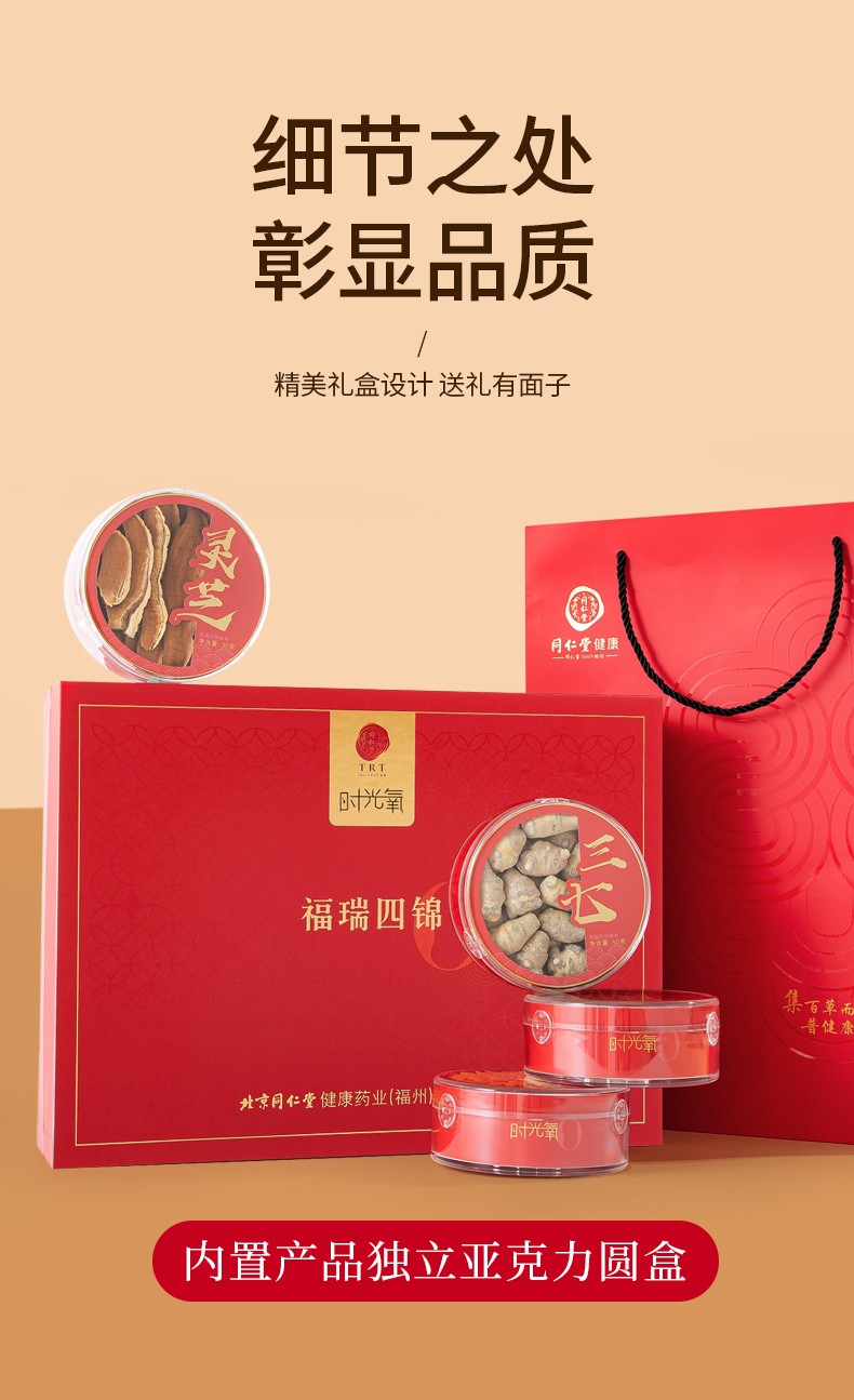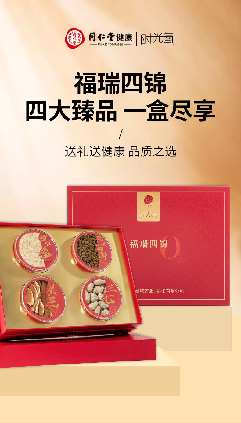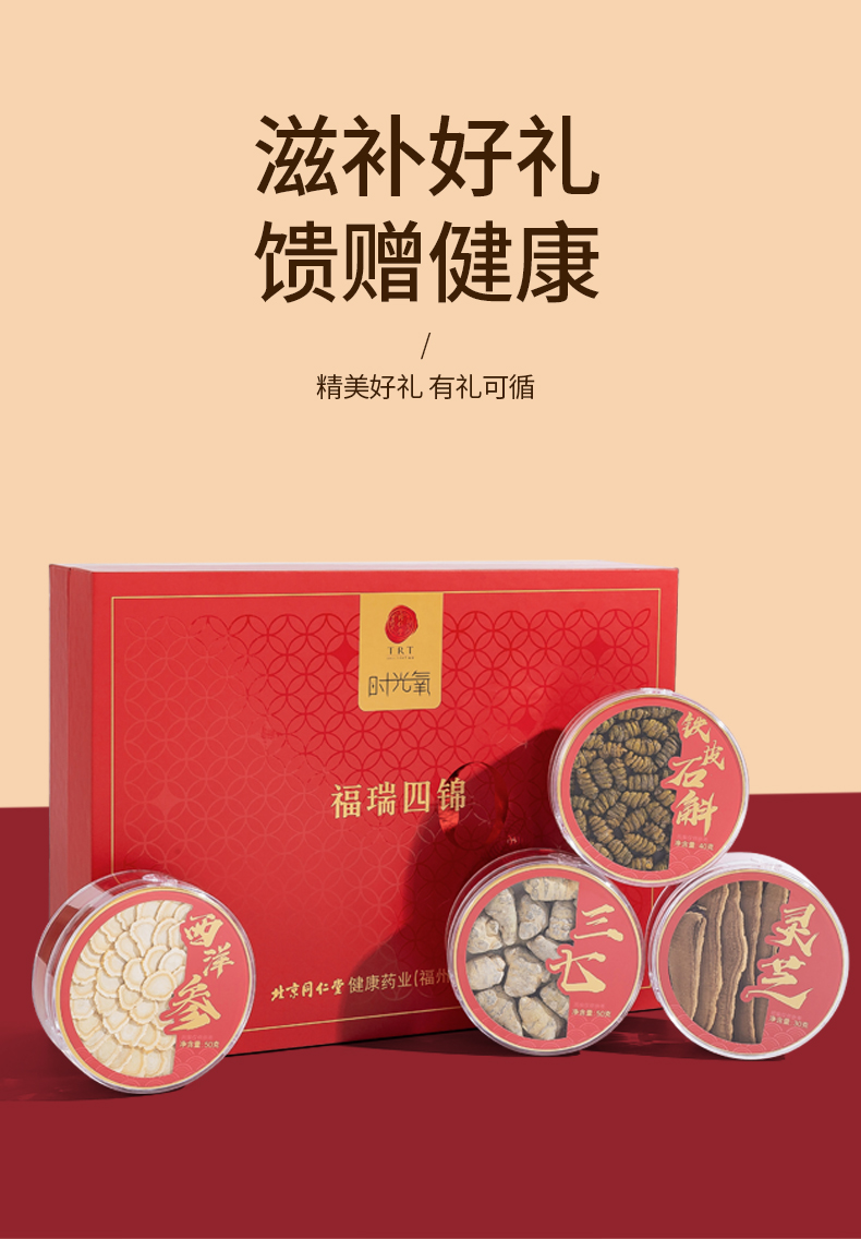 北京同仁堂时光氧2025款福瑞四锦170g(西洋参50g/铁皮石斛40g/灵芝30g/三七50g)