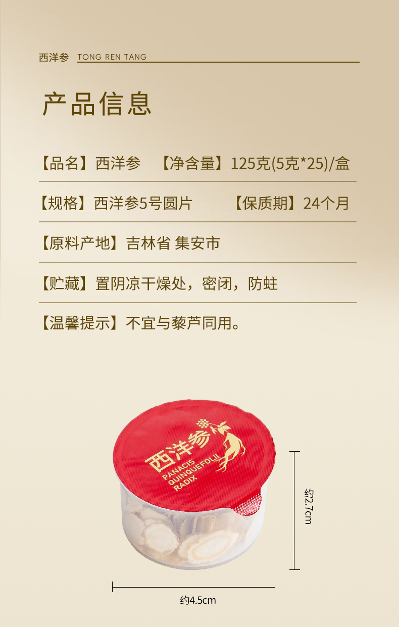 北京同仁堂时光氧国产西洋参片125克(5g*25)