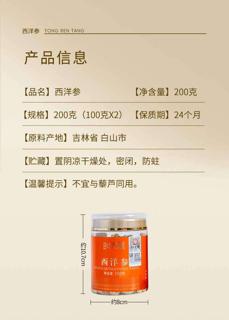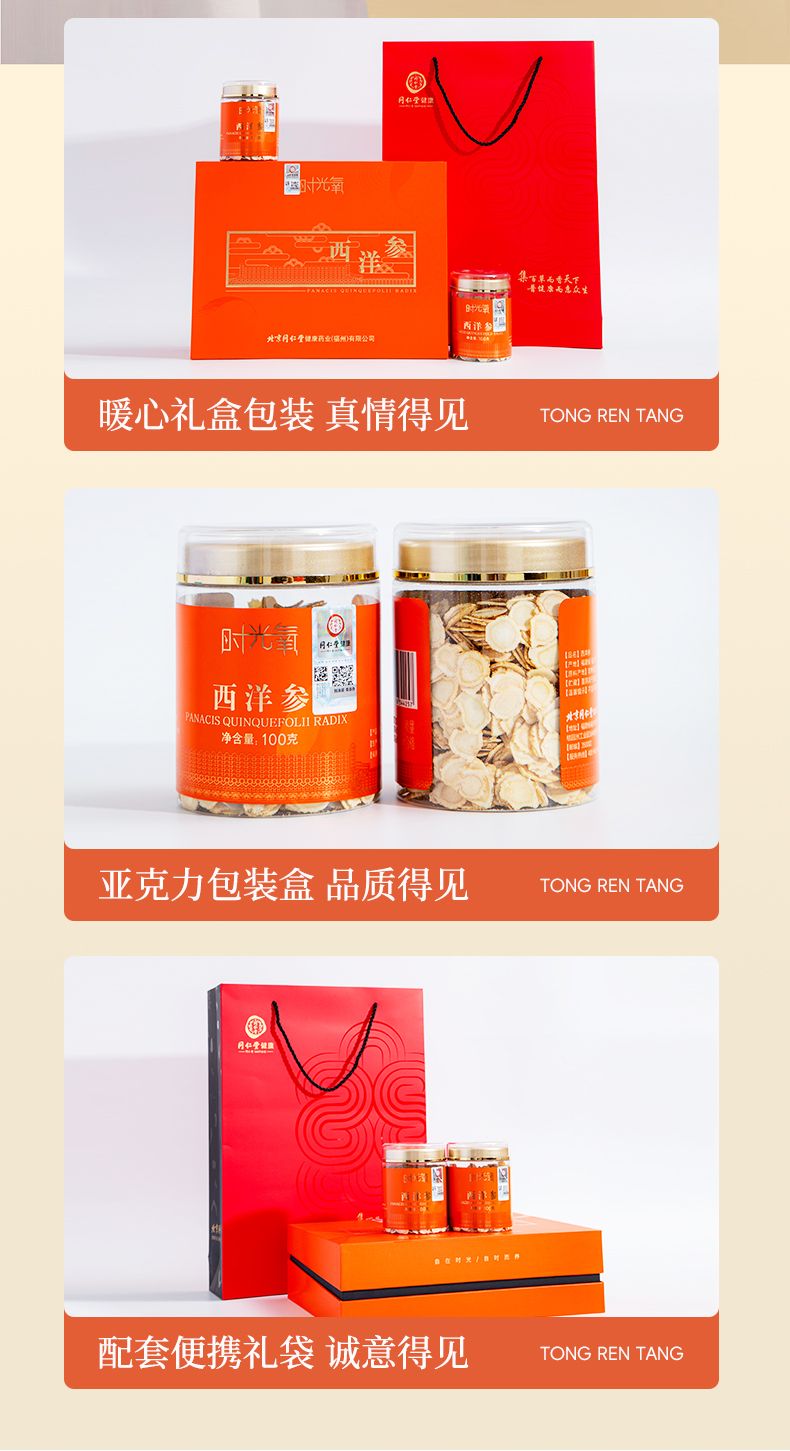 北京同仁堂时光氧国产西洋参片200克(100克*2)