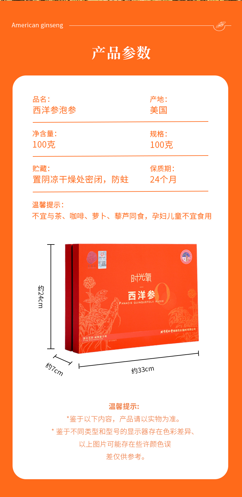 北京同仁堂时光氧美国西洋参泡参100克/盒