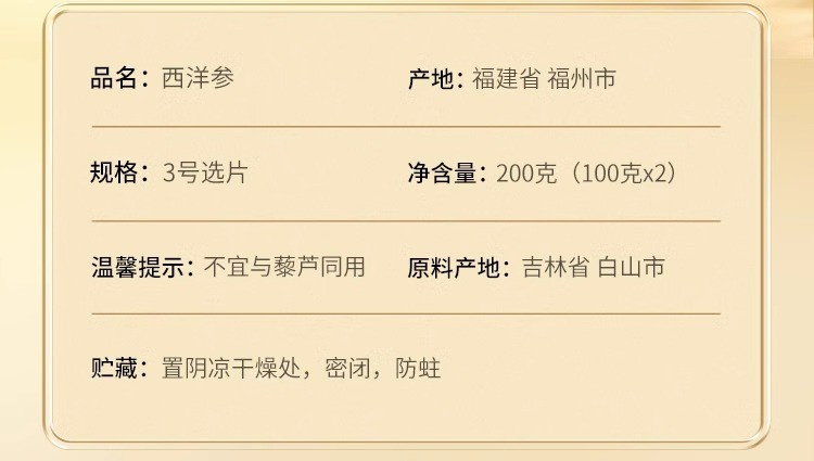 北京同仁堂造养青年国产西洋参片 (银标款)200克(100克*2)