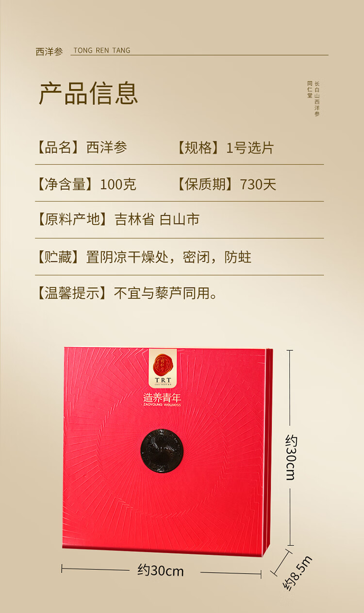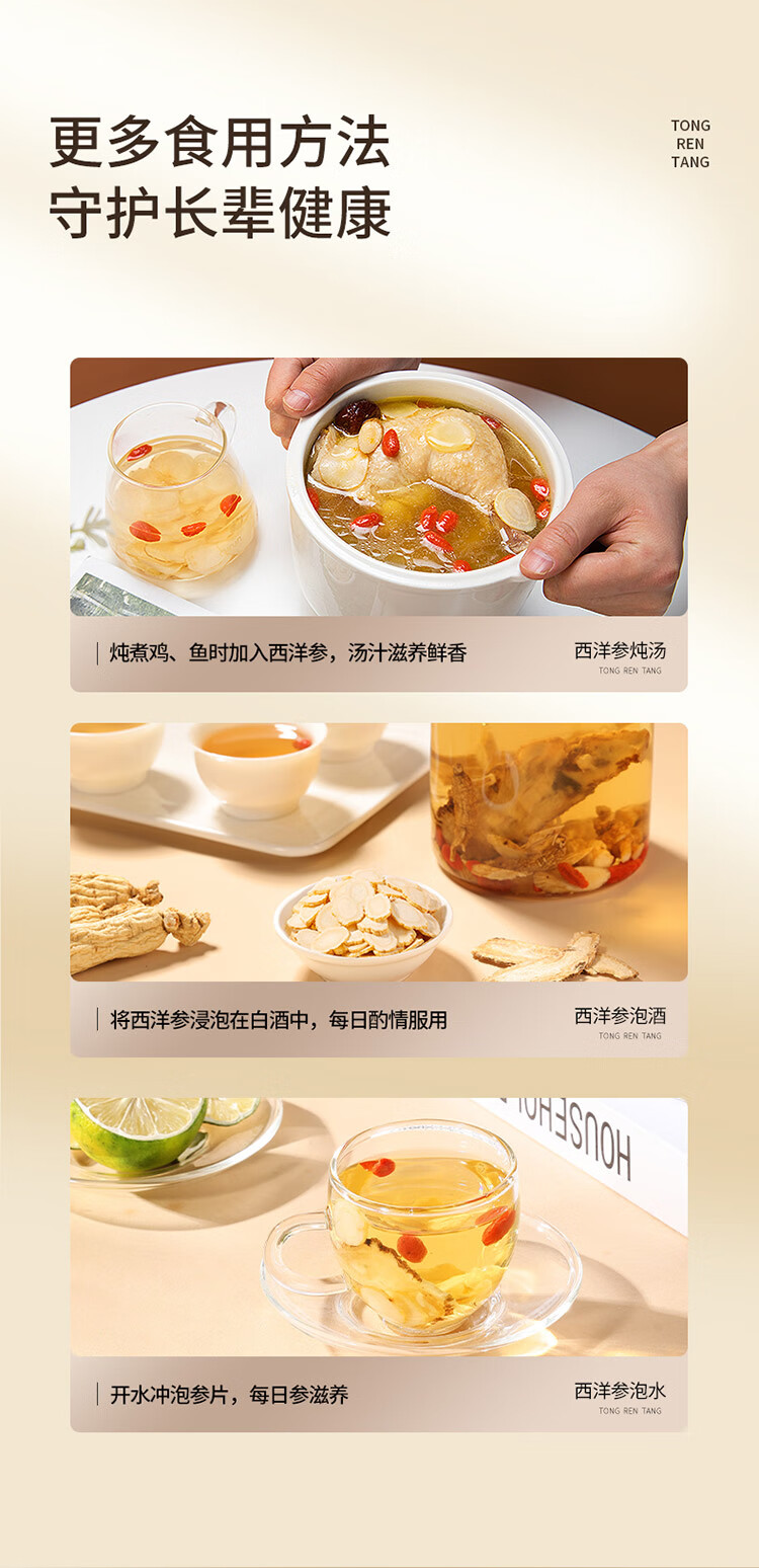 北京同仁堂造养青年国产西洋参片 (黑金标款)100克