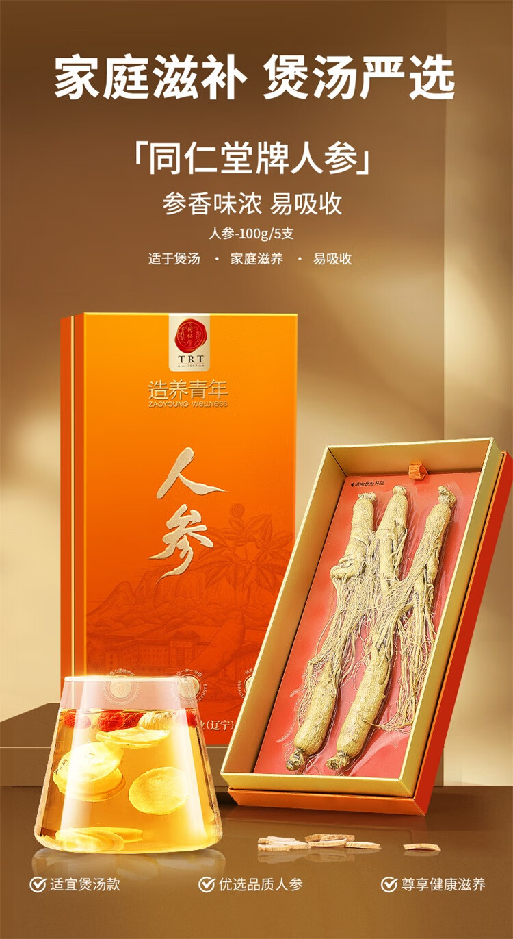 北京同仁堂造养青年人参礼盒5支100克