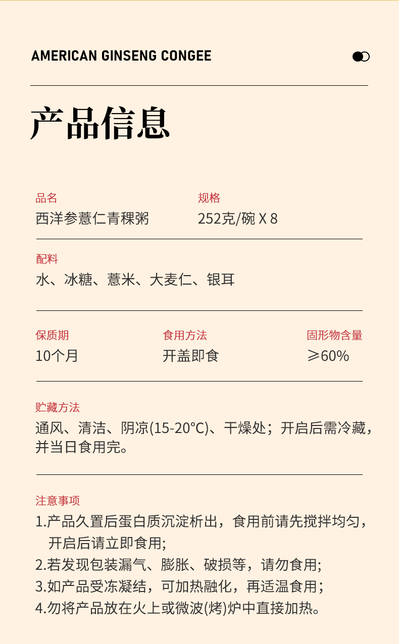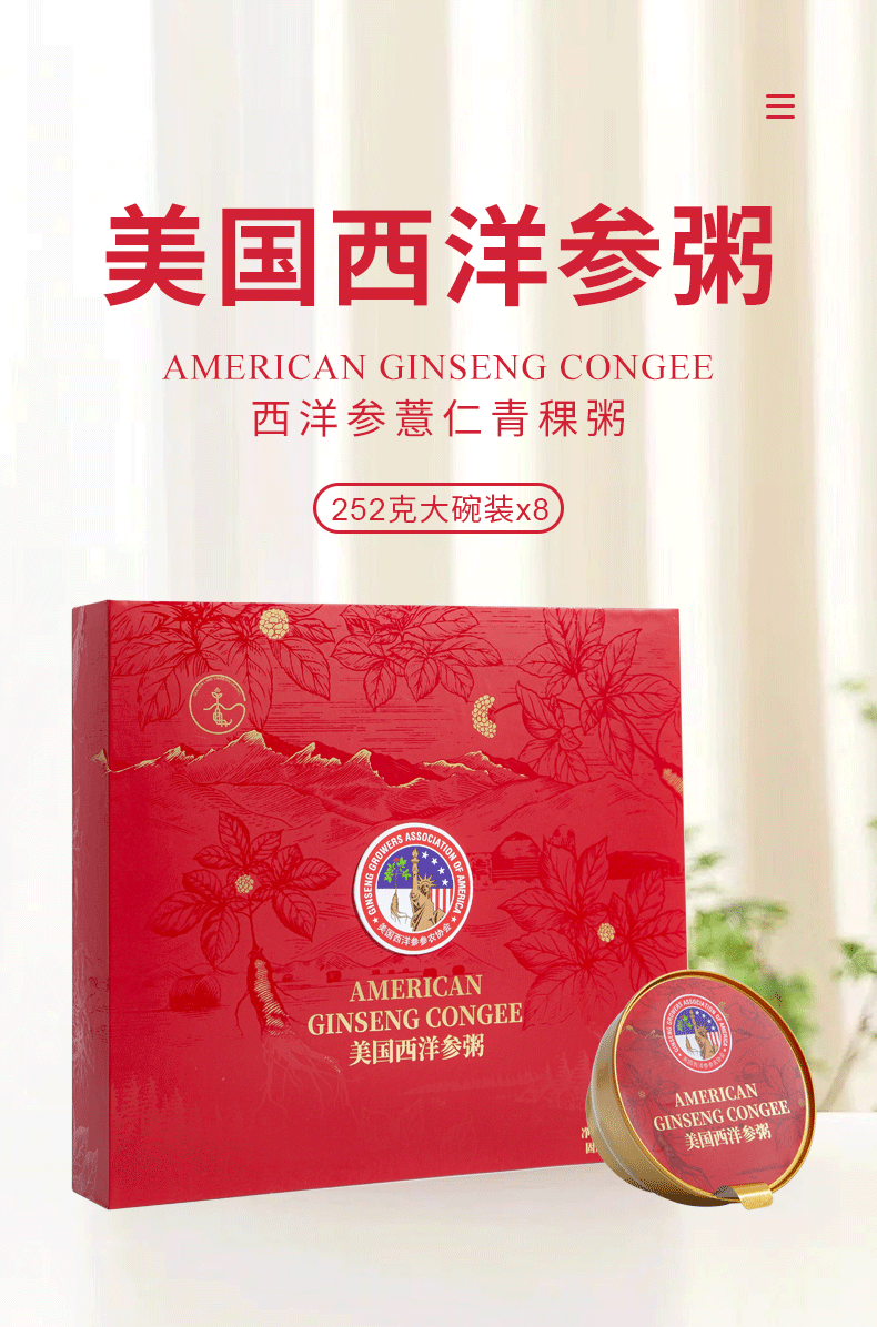 美国西洋参参农协会美国西洋参薏仁青稞粥礼盒装252克/碗*8碗