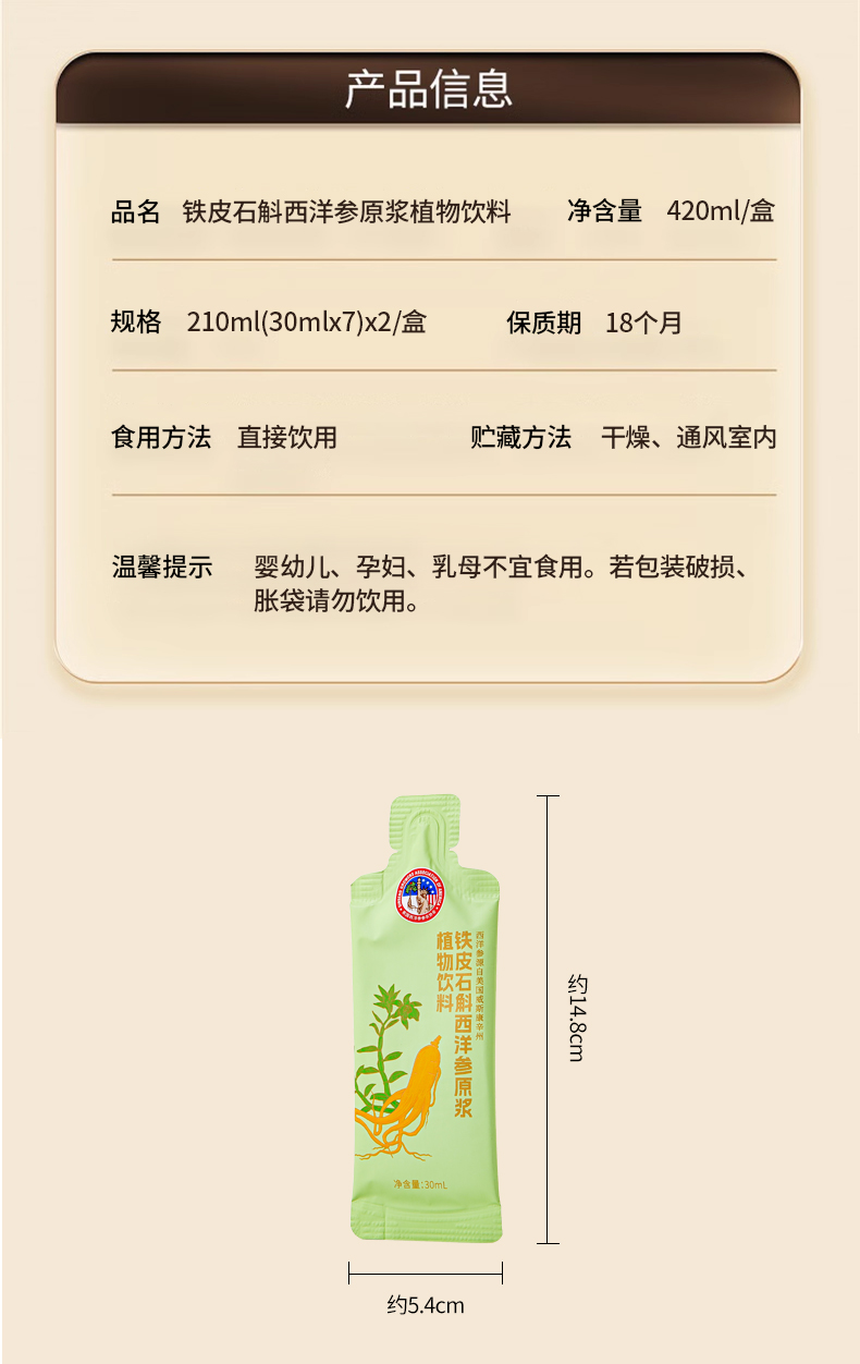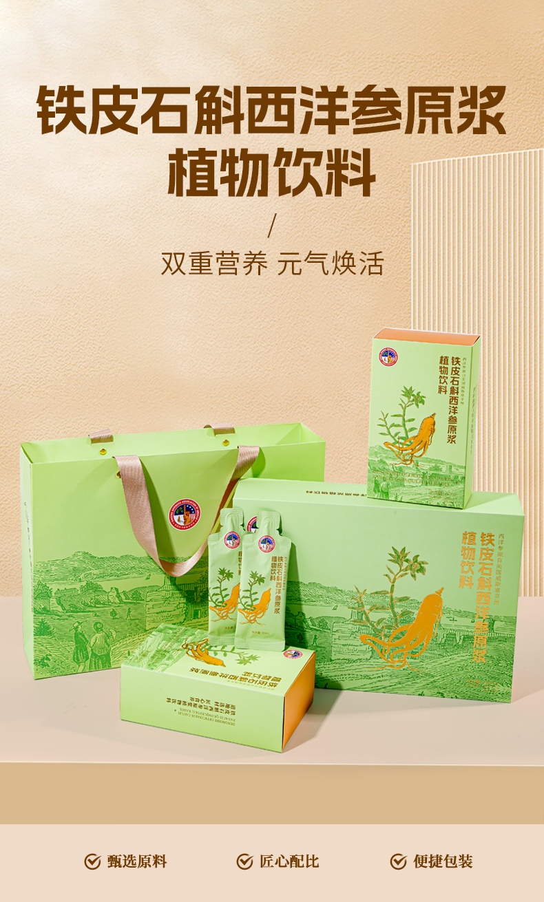 美国西洋参参农协会铁皮石斛西洋参原浆植物饮料礼盒420ml