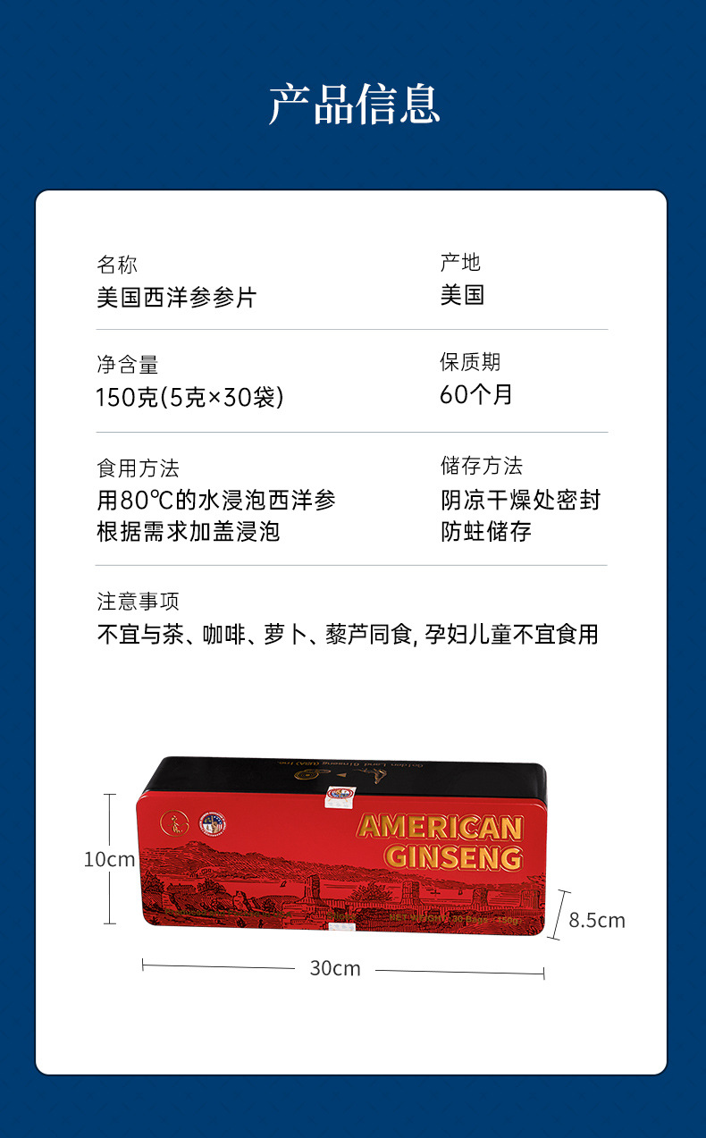 美国西洋参参农协会西洋参参片150克(5克*30袋)