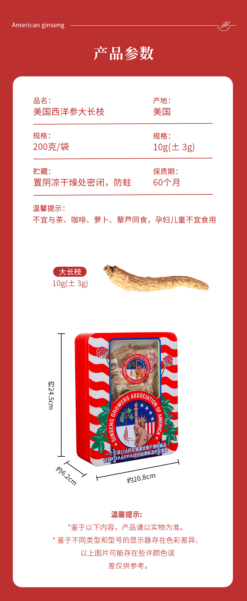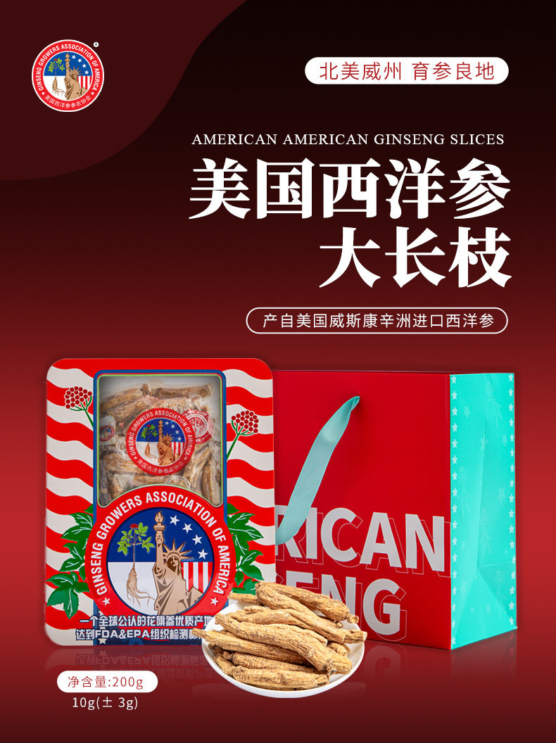 美国西洋参参农协会大长枝10g(±3g)200克/盒