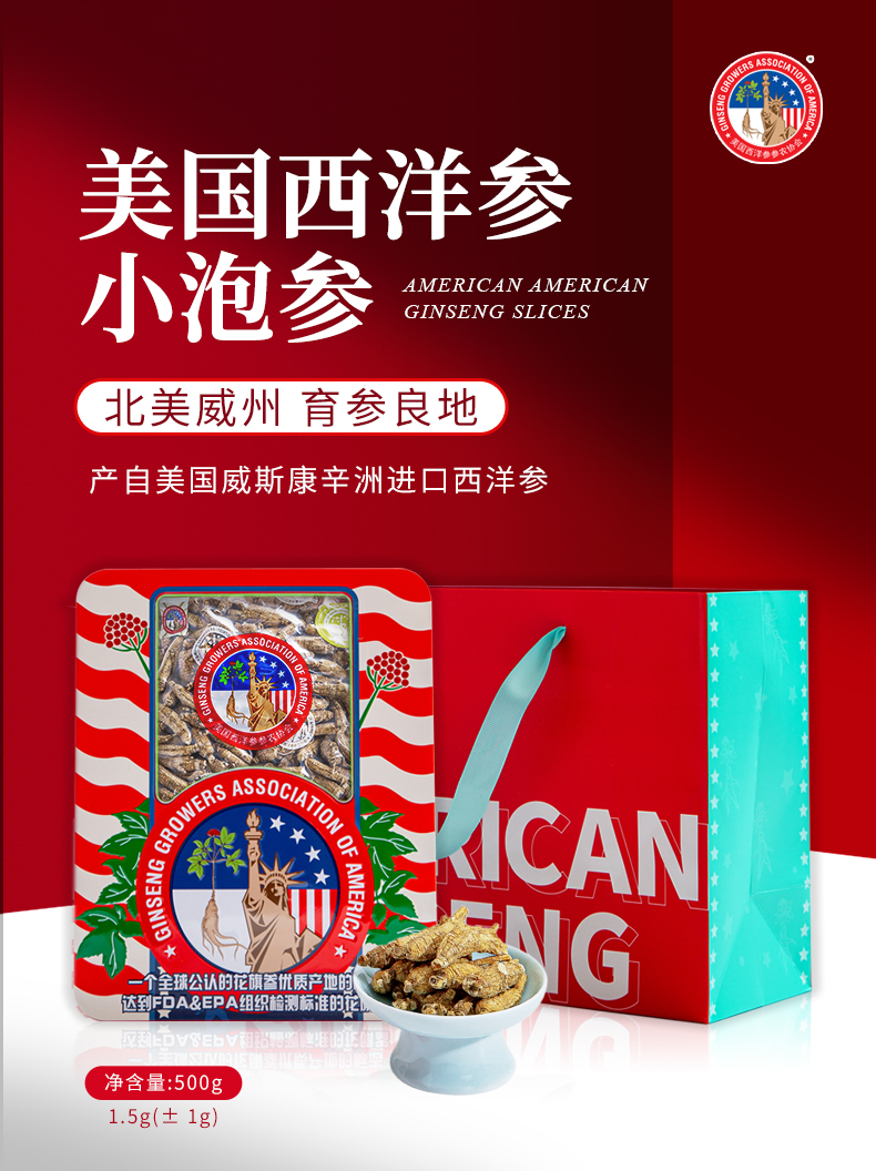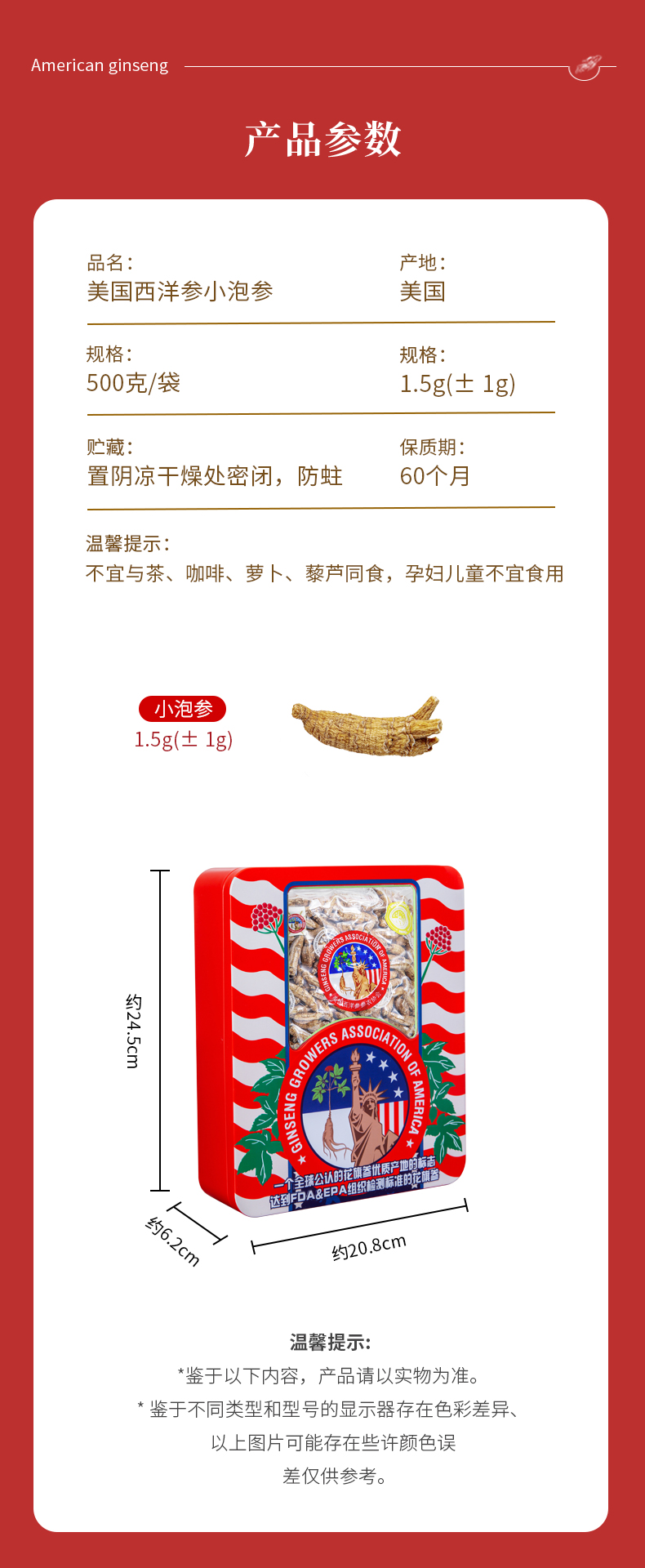 美国西洋参参农协会小泡参1.5g(±1g)500克/盒