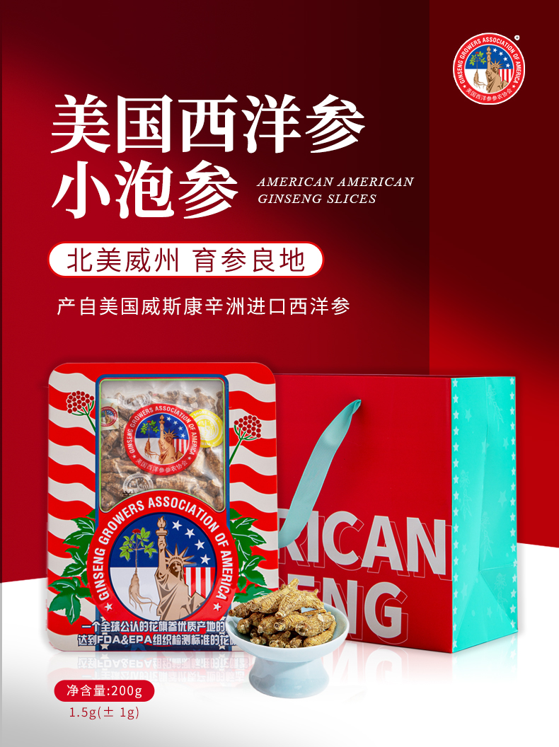 美国西洋参参农协会小泡参1.5g(±1g)200克/盒