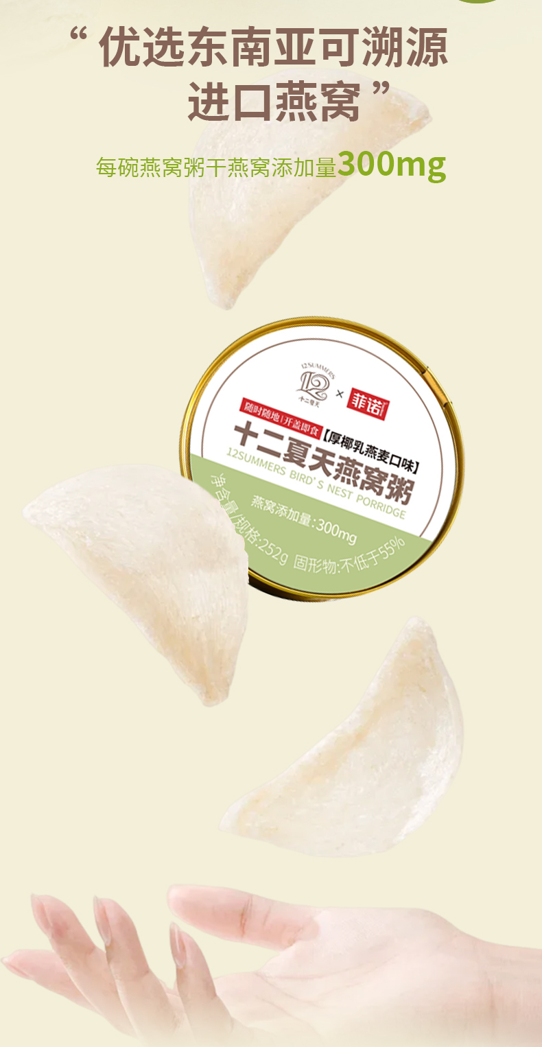 十二夏天燕窝粥厚椰乳燕麦口味 252g*6碗/盒
