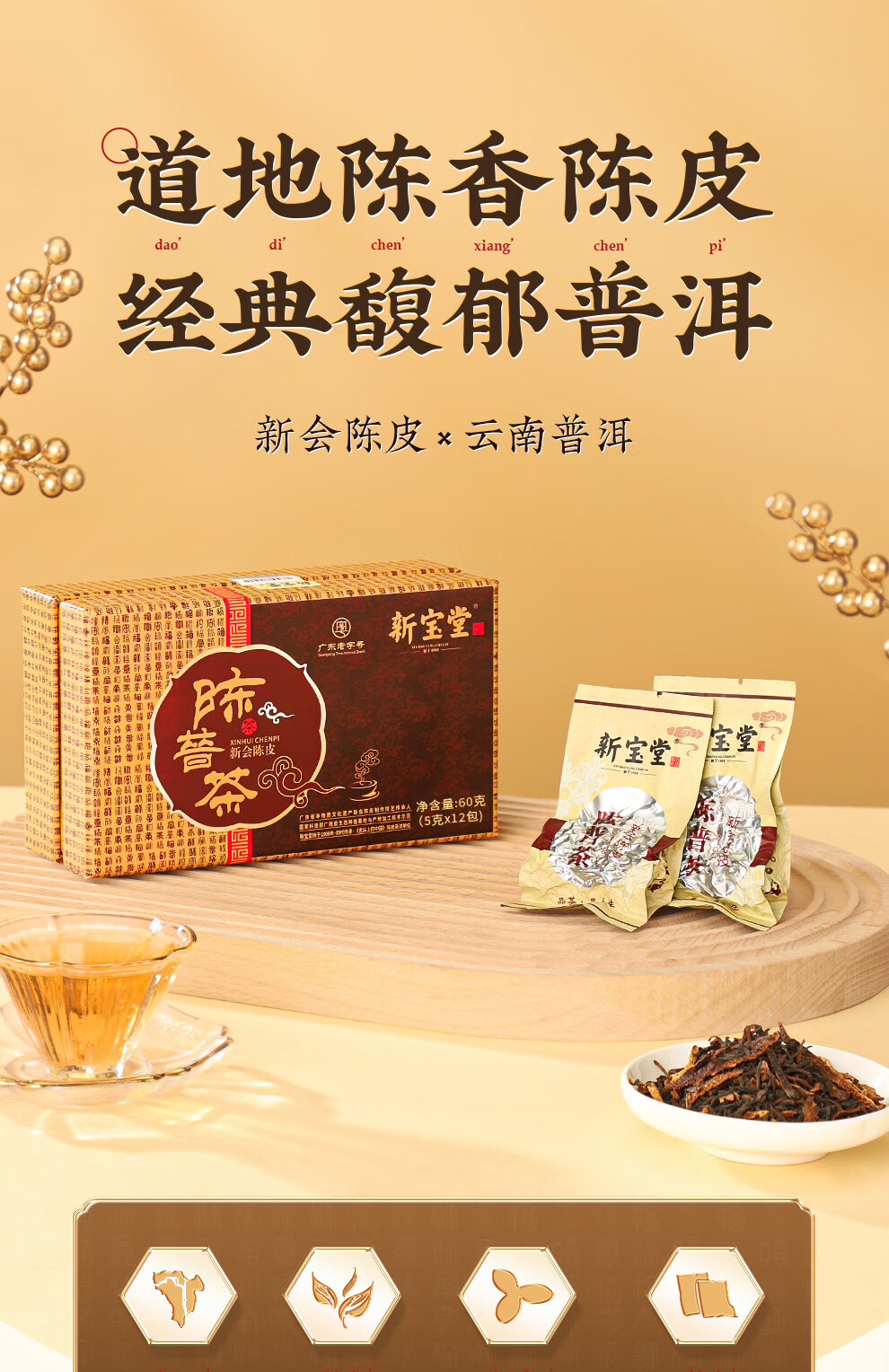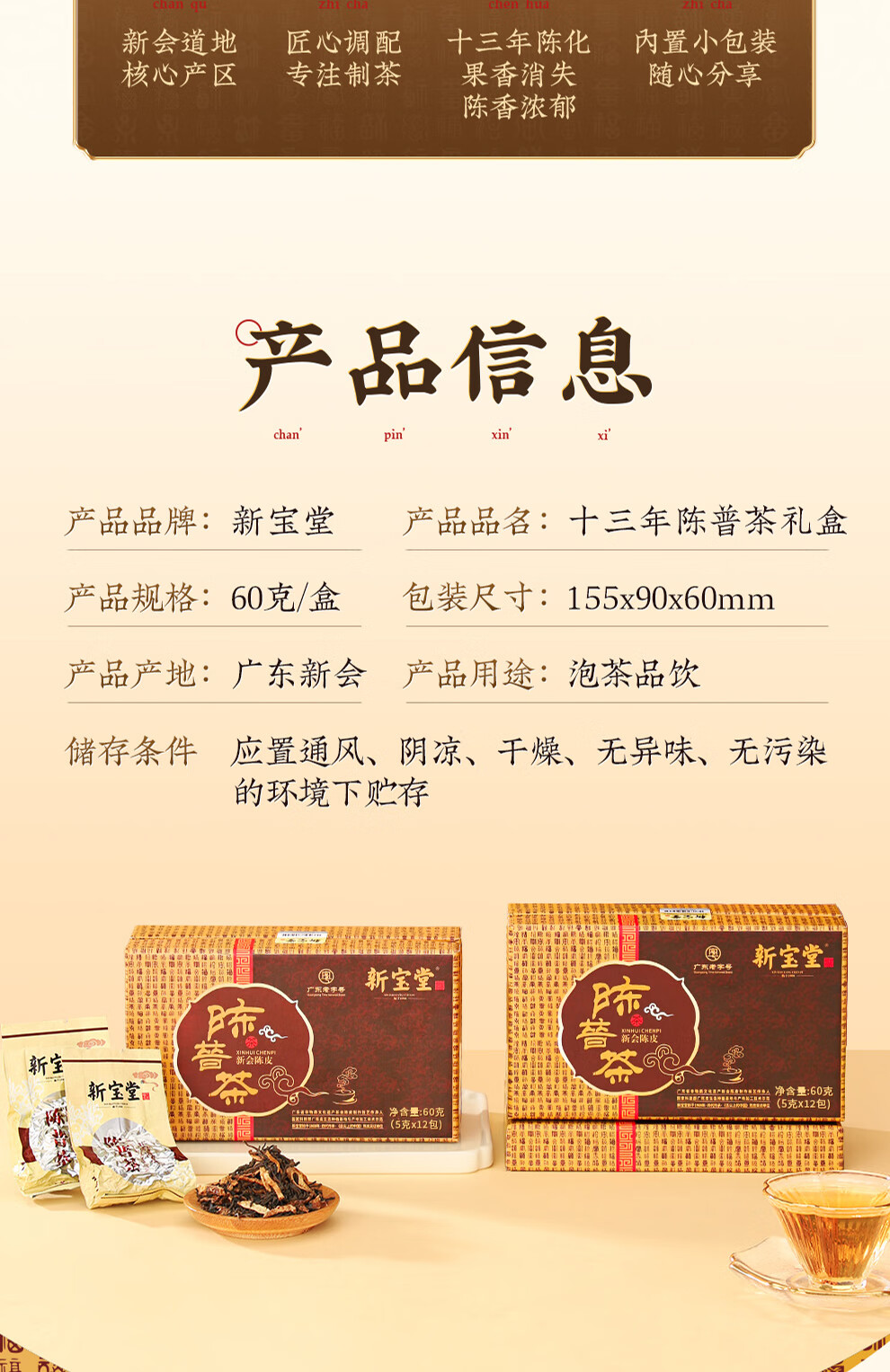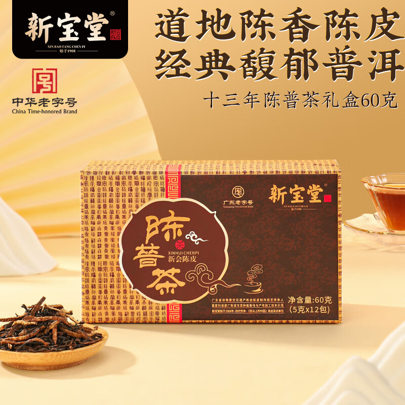 【新宝堂】 十三年新会陈皮 普洱熟茶礼盒60g