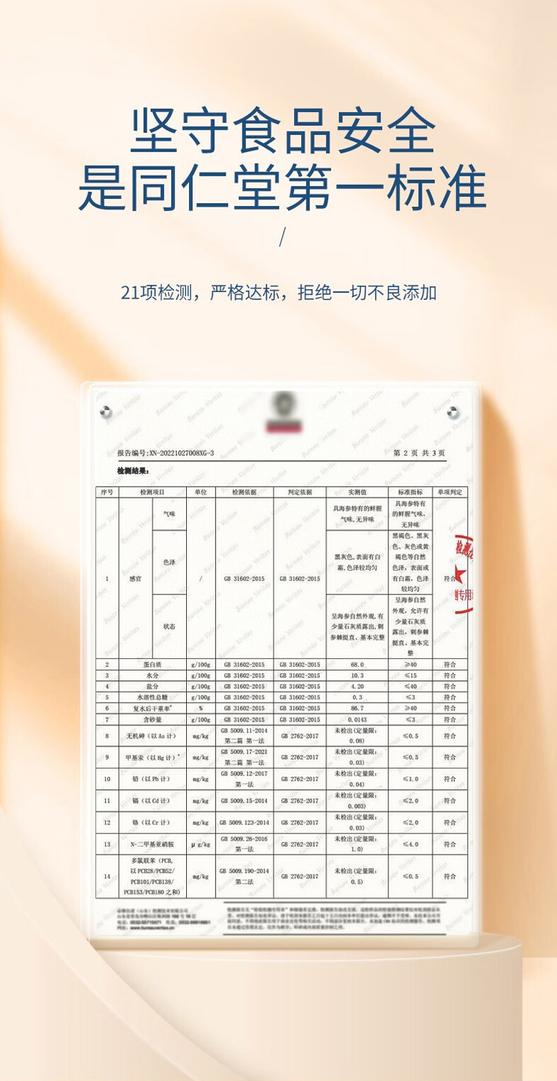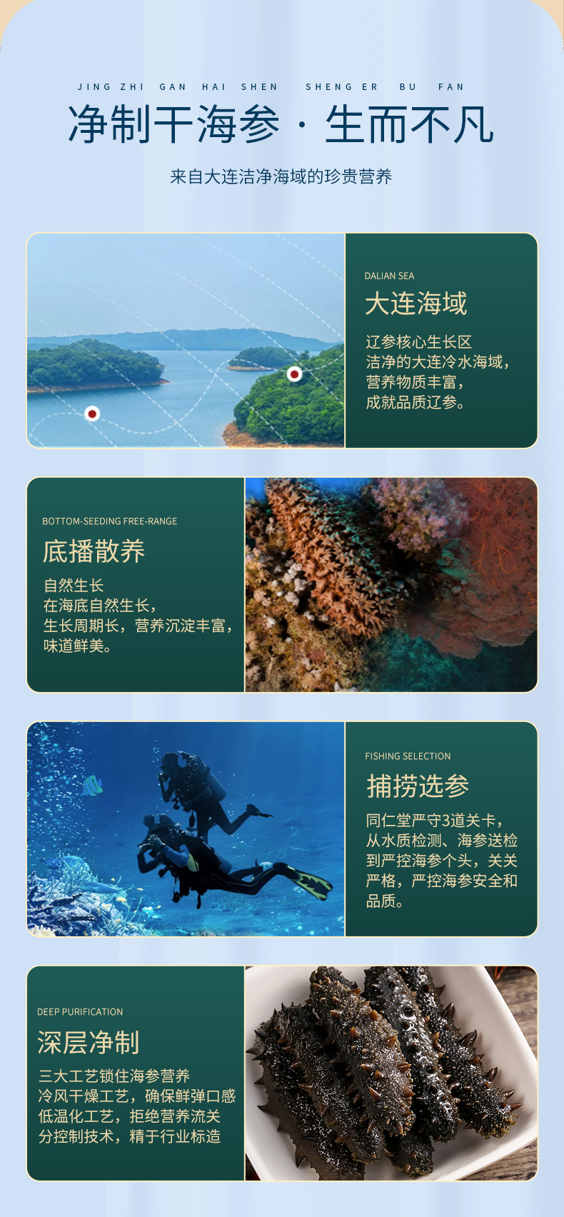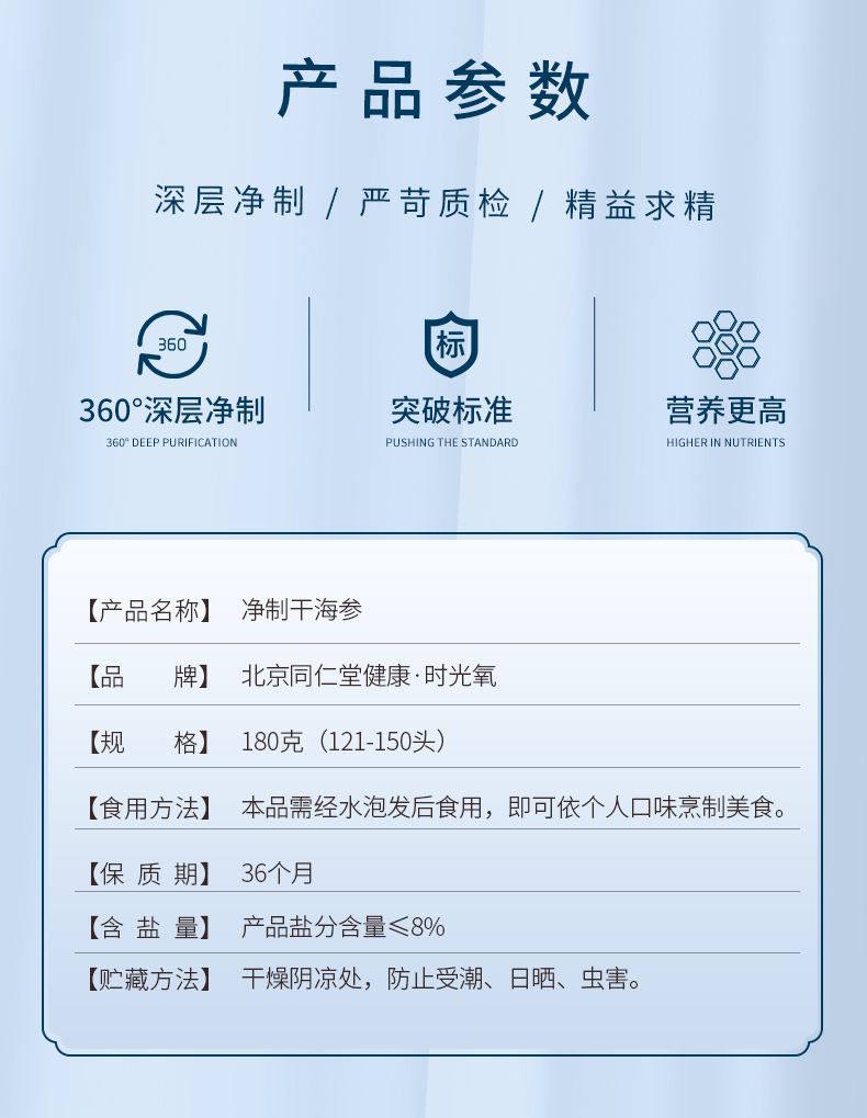 北京同仁堂时光氧净制干海参特级180克 (121-150头)