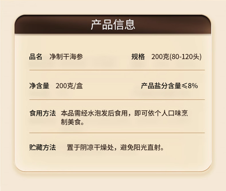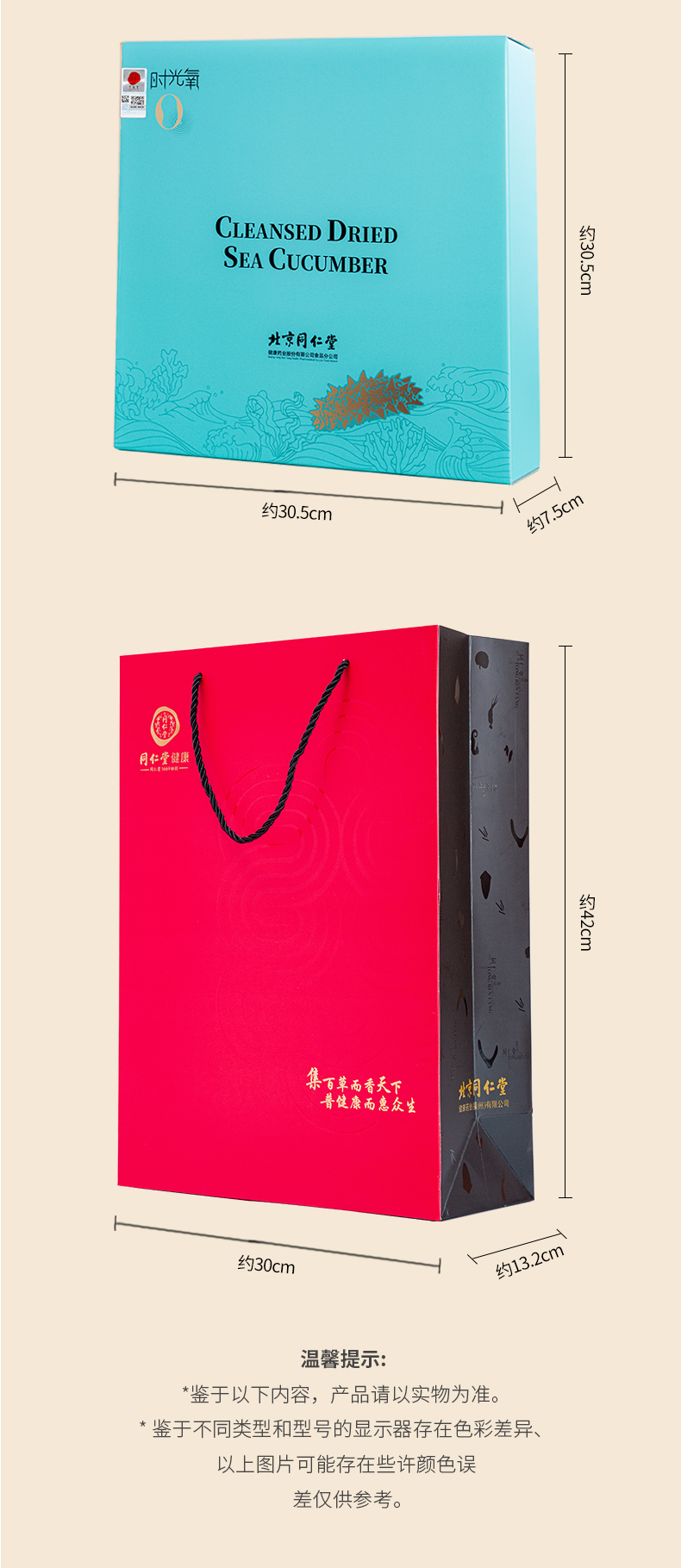 北京同仁堂时光氧净制干海参特级200克 (80-120头)