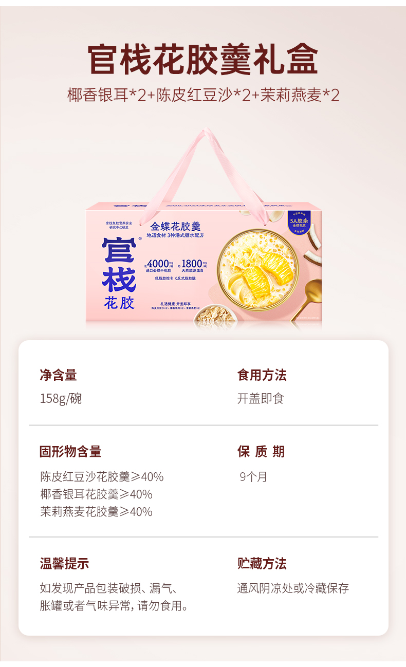 【官栈】 港式金蝶花胶羹 礼盒三口味948g