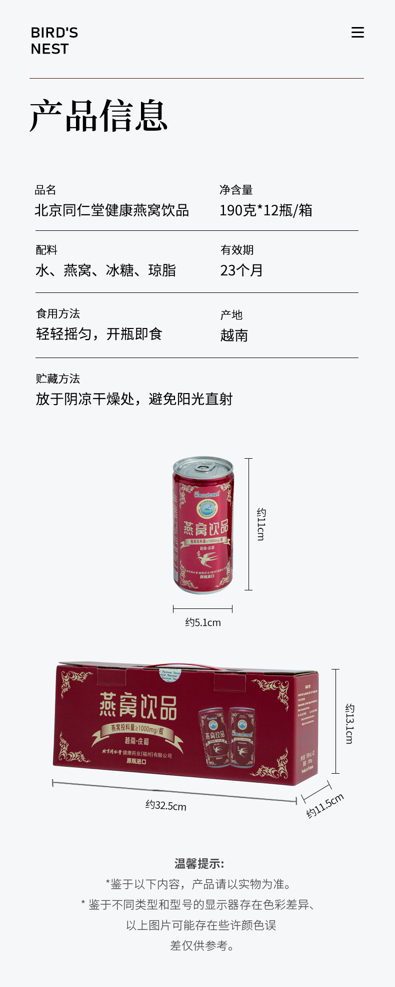 北京同仁堂越南燕窝饮品190ml*12瓶/盒