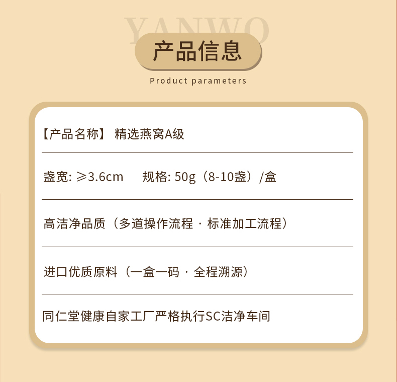 北京同仁堂时光氧印尼燕窝(红盒)精选A 50克