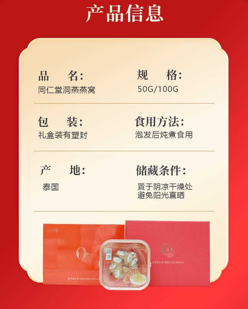 北京同仁堂时光氧泰国洞燕精选100g