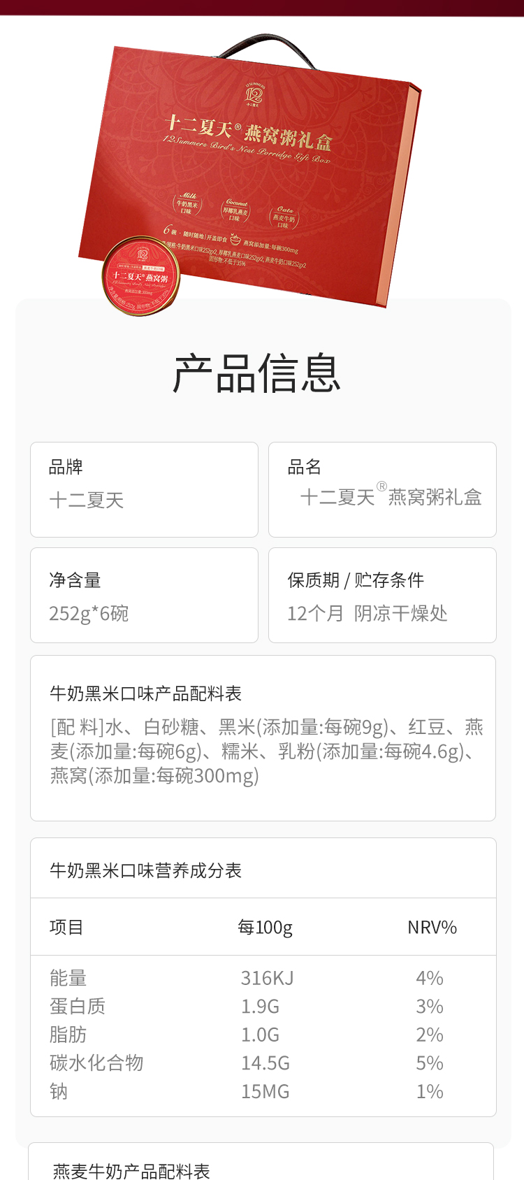 十二夏天燕窝粥礼盒252g*6碗/盒