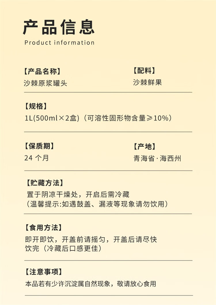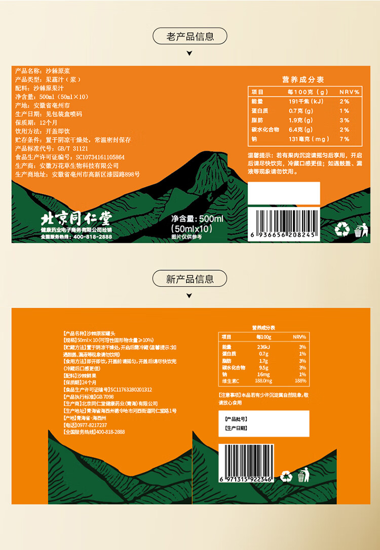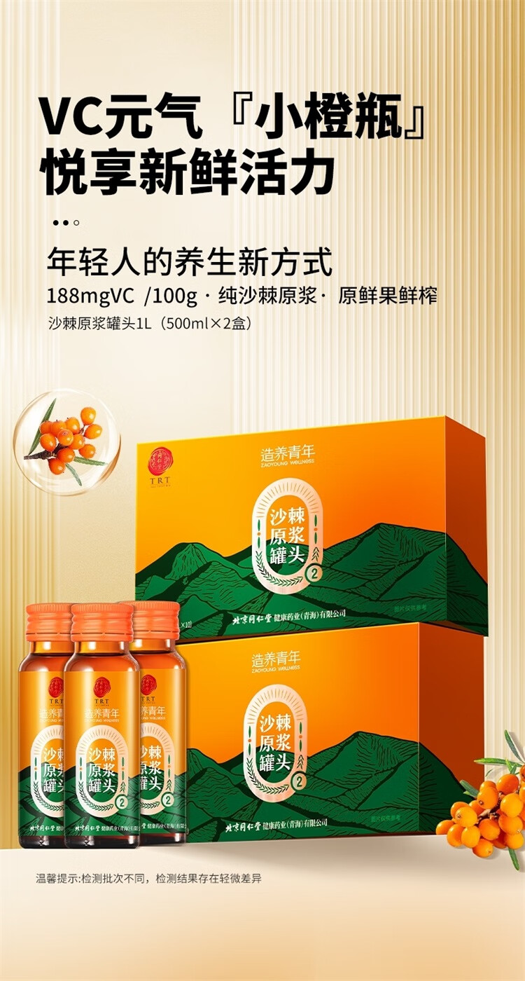 北京同仁堂造养青年沙棘原浆1L(50ml*10瓶*2盒)