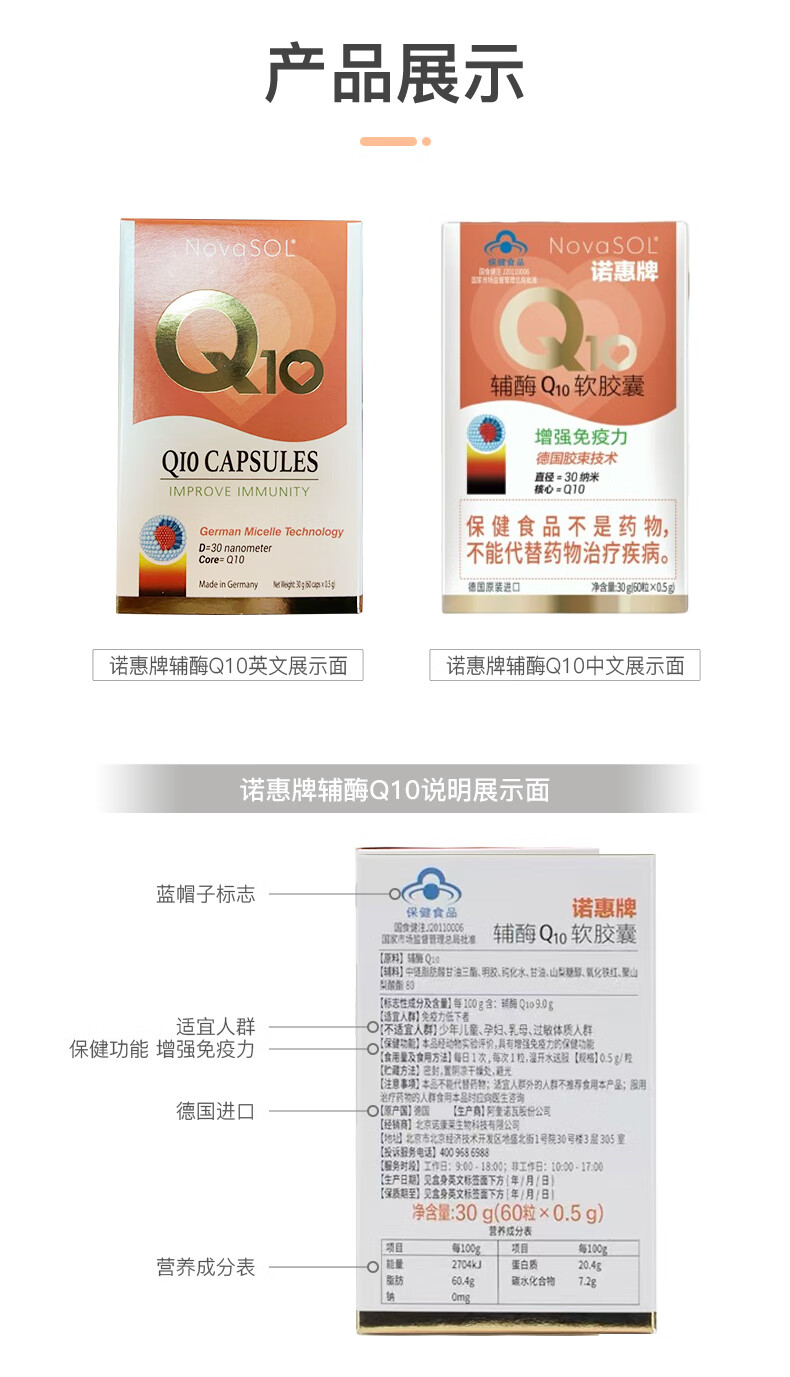 诺惠牌辅酶Q10 60粒*2瓶+诺康莱鱼油无糖凝胶糖果30粒(成人)*2盒