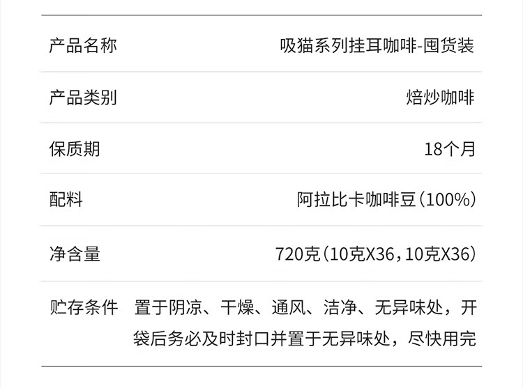 品 名:瑞幸吸猫系列2.0挂耳咖啡