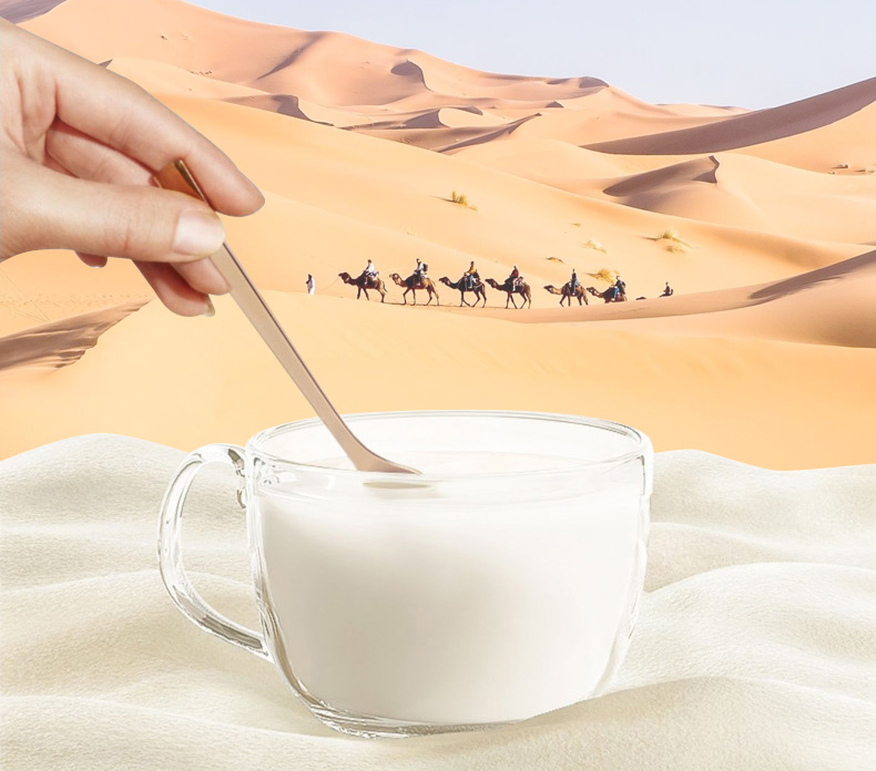 4、半自动机械挤奶;全自动生产成罐,保留驼奶营养;进口冷冻干