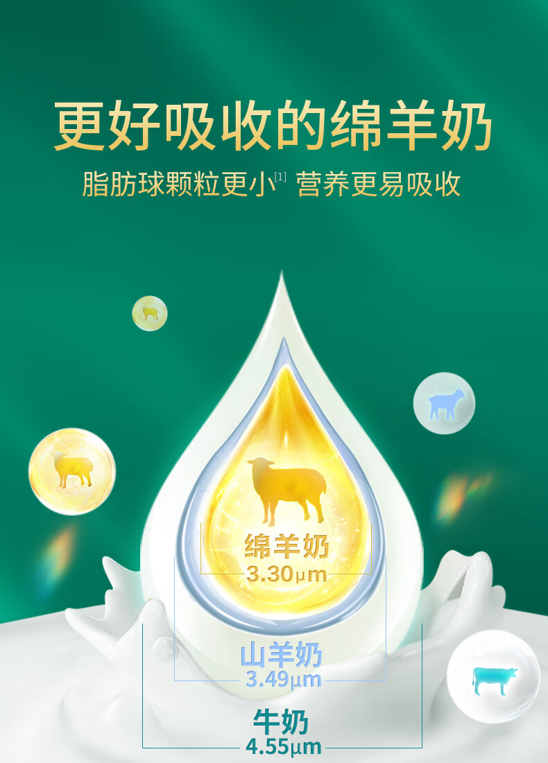 2、独特的绵羊奶小分子,脂肪球比山羊奶和牛奶更小更容易吸收