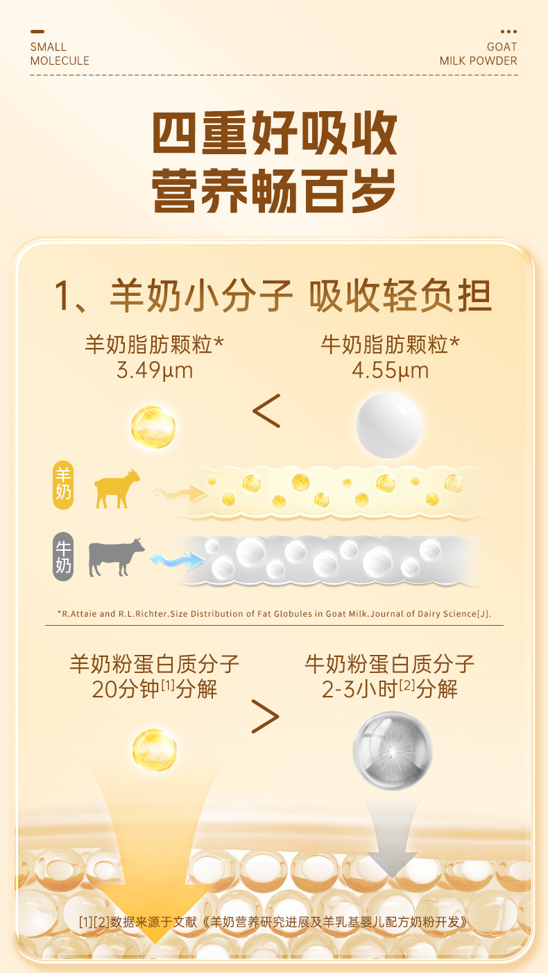 2、羊奶脂肪颗粒小于牛奶,且羊奶蛋白质比牛奶更易被肠道消化吸收