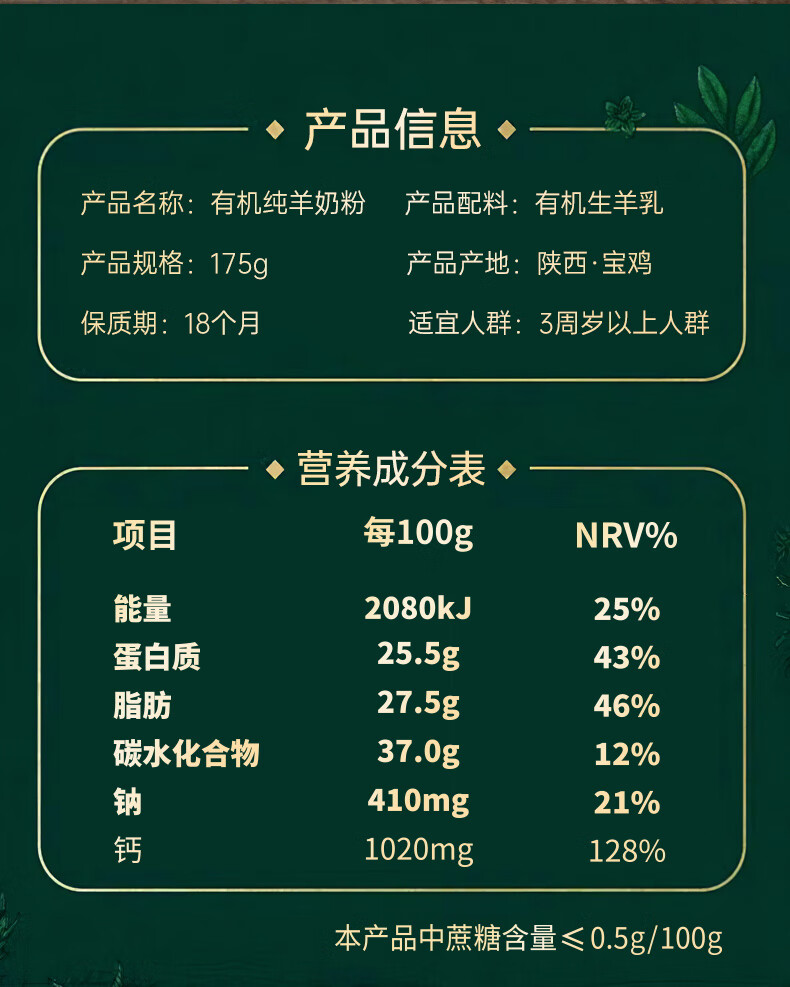 2.配料表只含有机生羊乳,100%无添加 普通食品