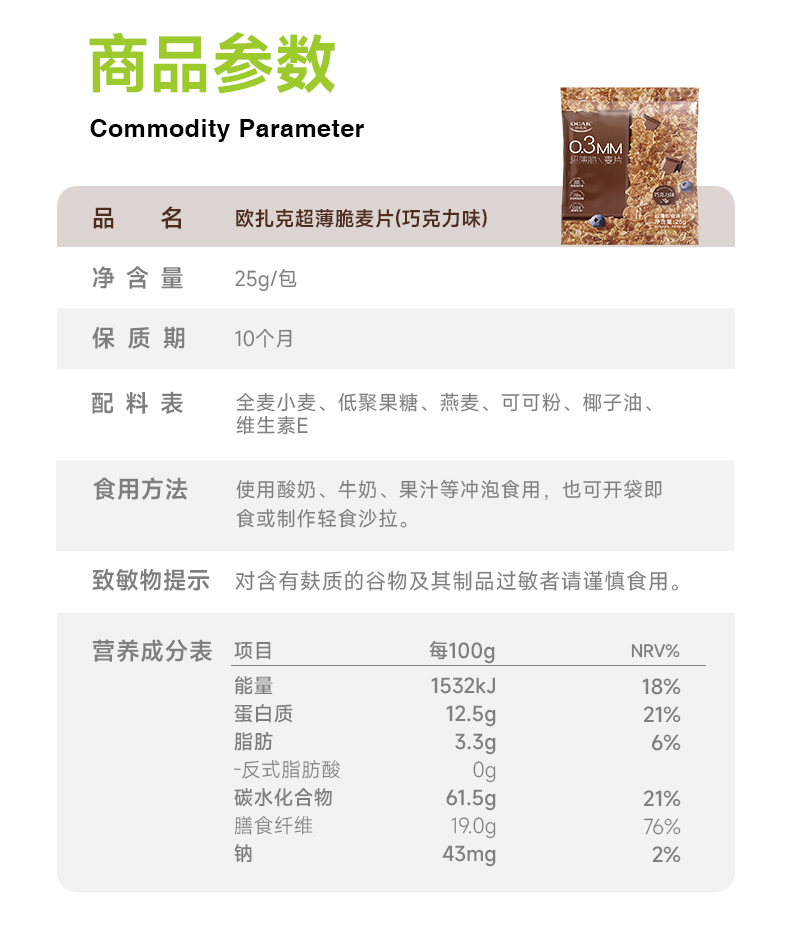 欧扎克超薄脆麦片礼盒750g(绿色款)