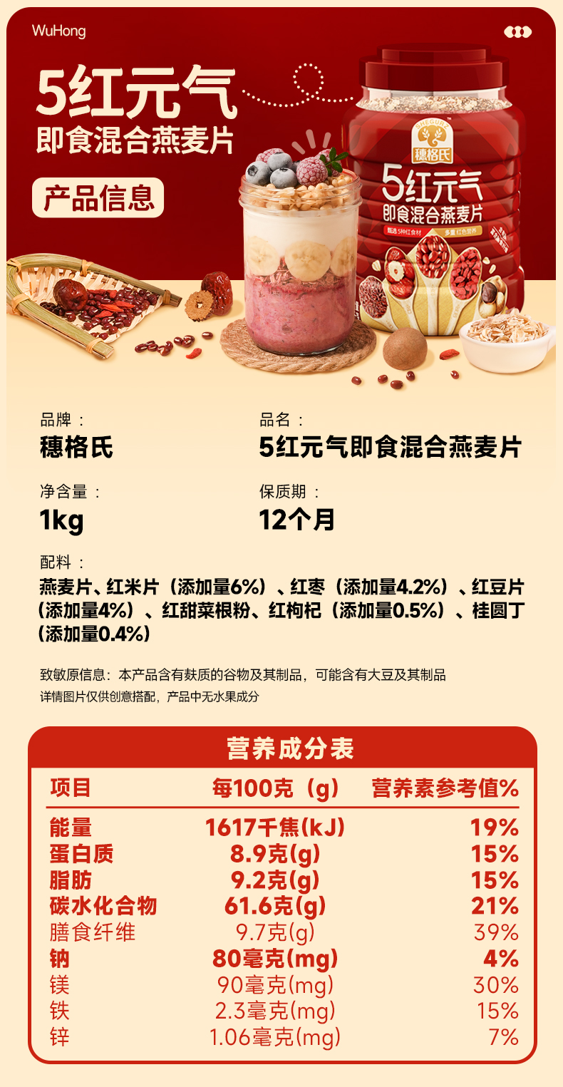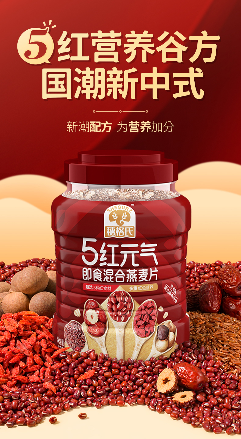 穗格氏 5红元气即食混合燕麦片1000g/罐