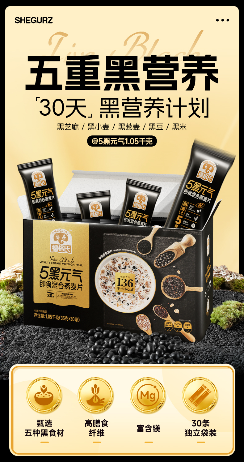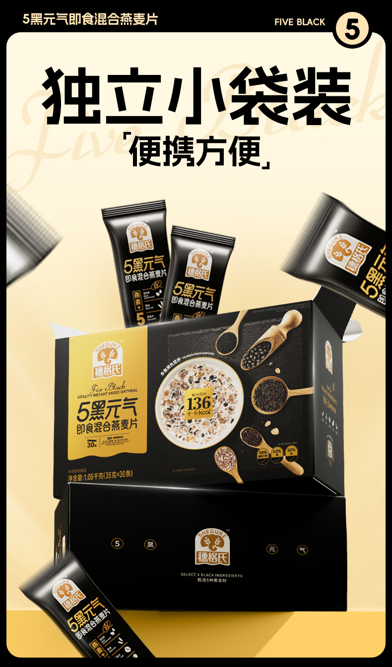 穗格氏 5黑元气即食混合燕麦片礼盒1050g/提