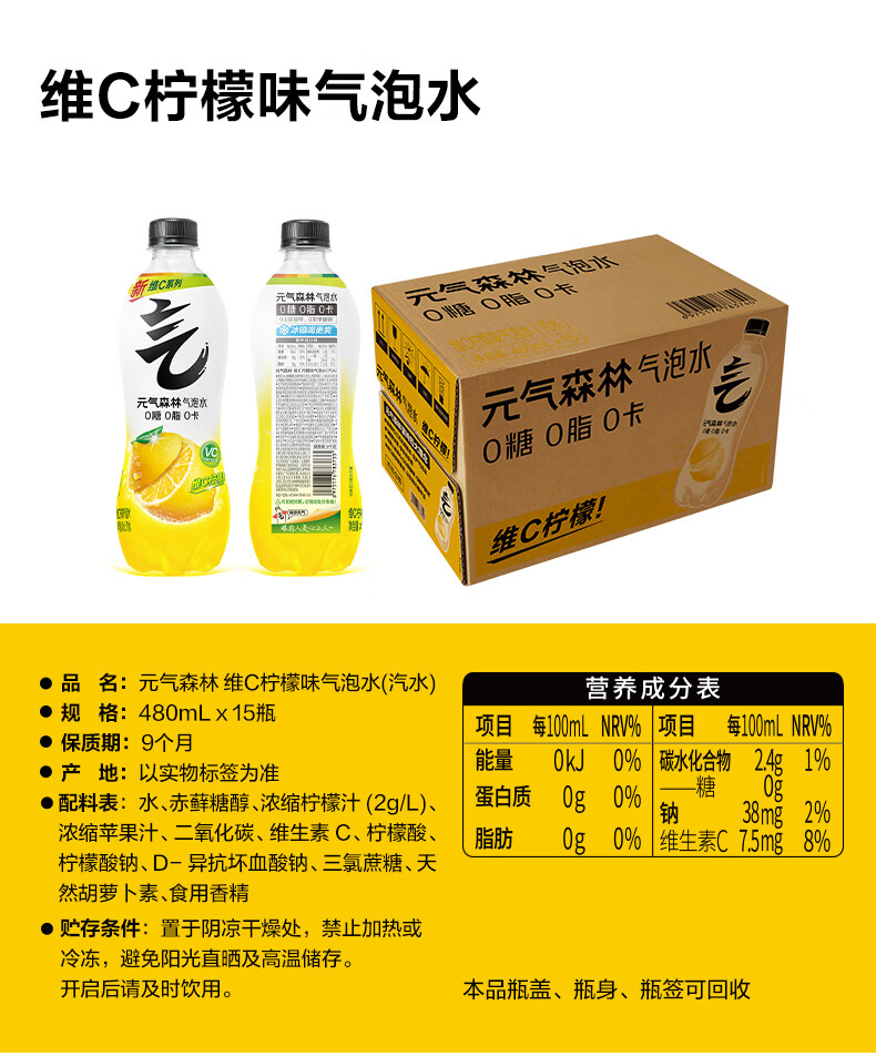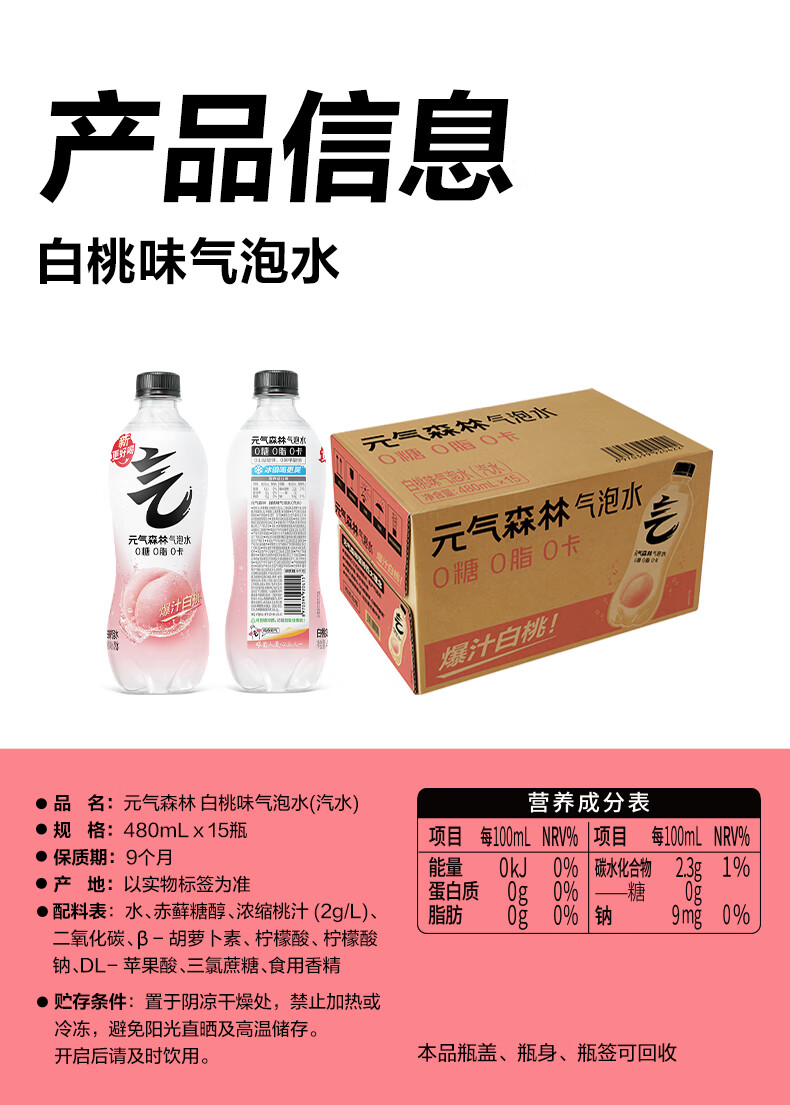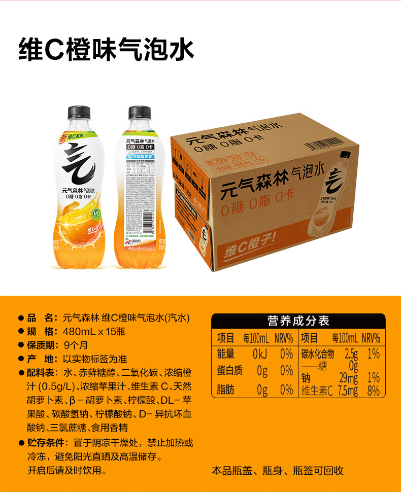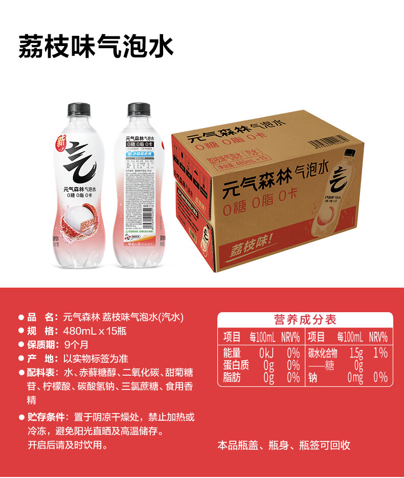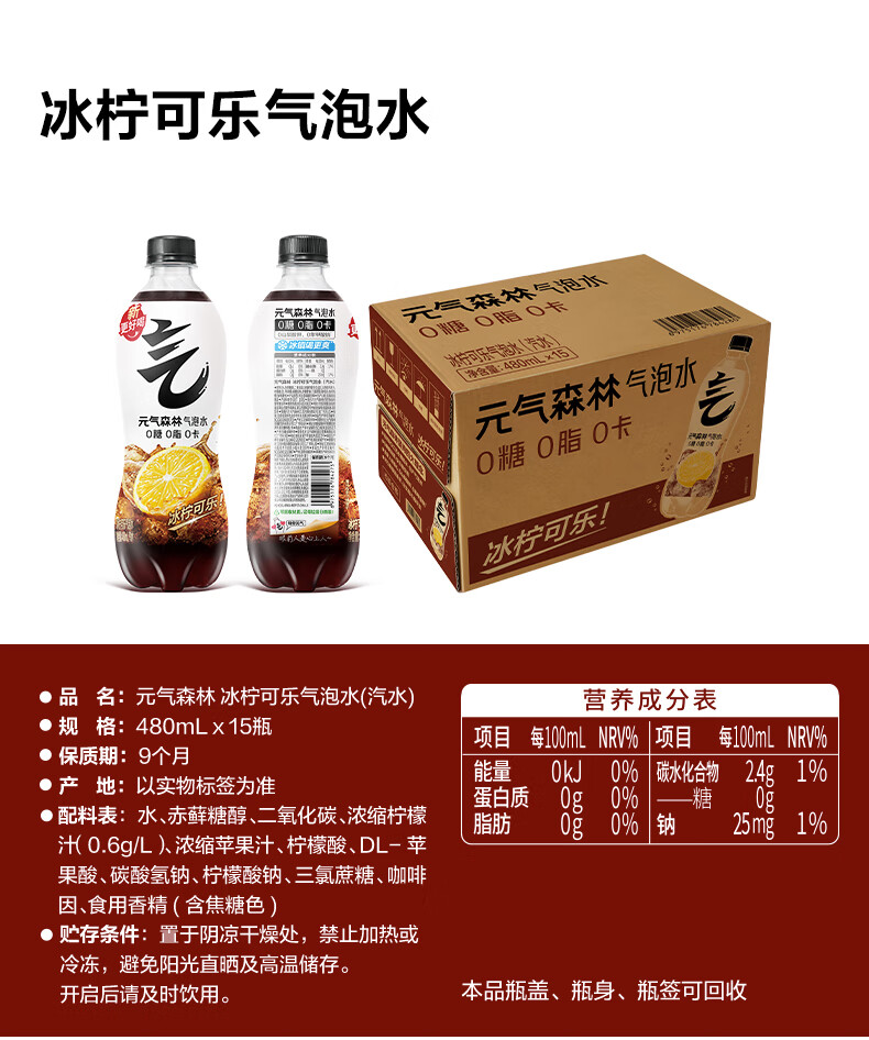 元气森林气泡水 夏黑葡萄480ml*15 (0糖0脂0卡)