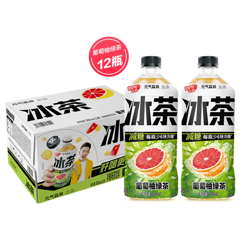 元气森林 冰茶-低糖-葡萄柚冰绿茶 PET900ml