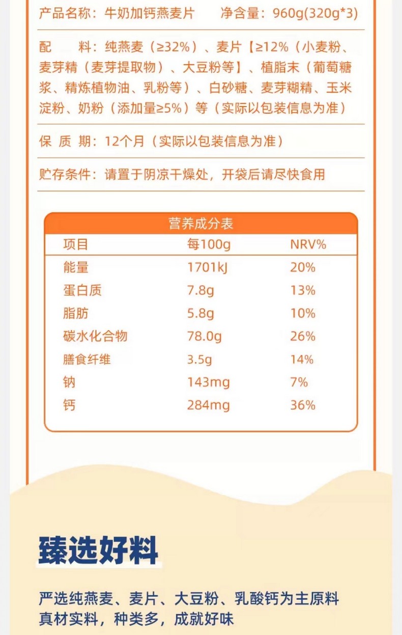 麦缤纷牛奶加钙燕麦片礼盒960g
