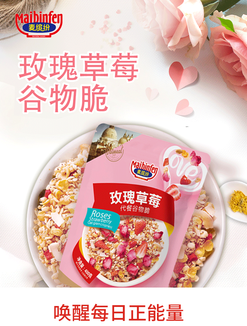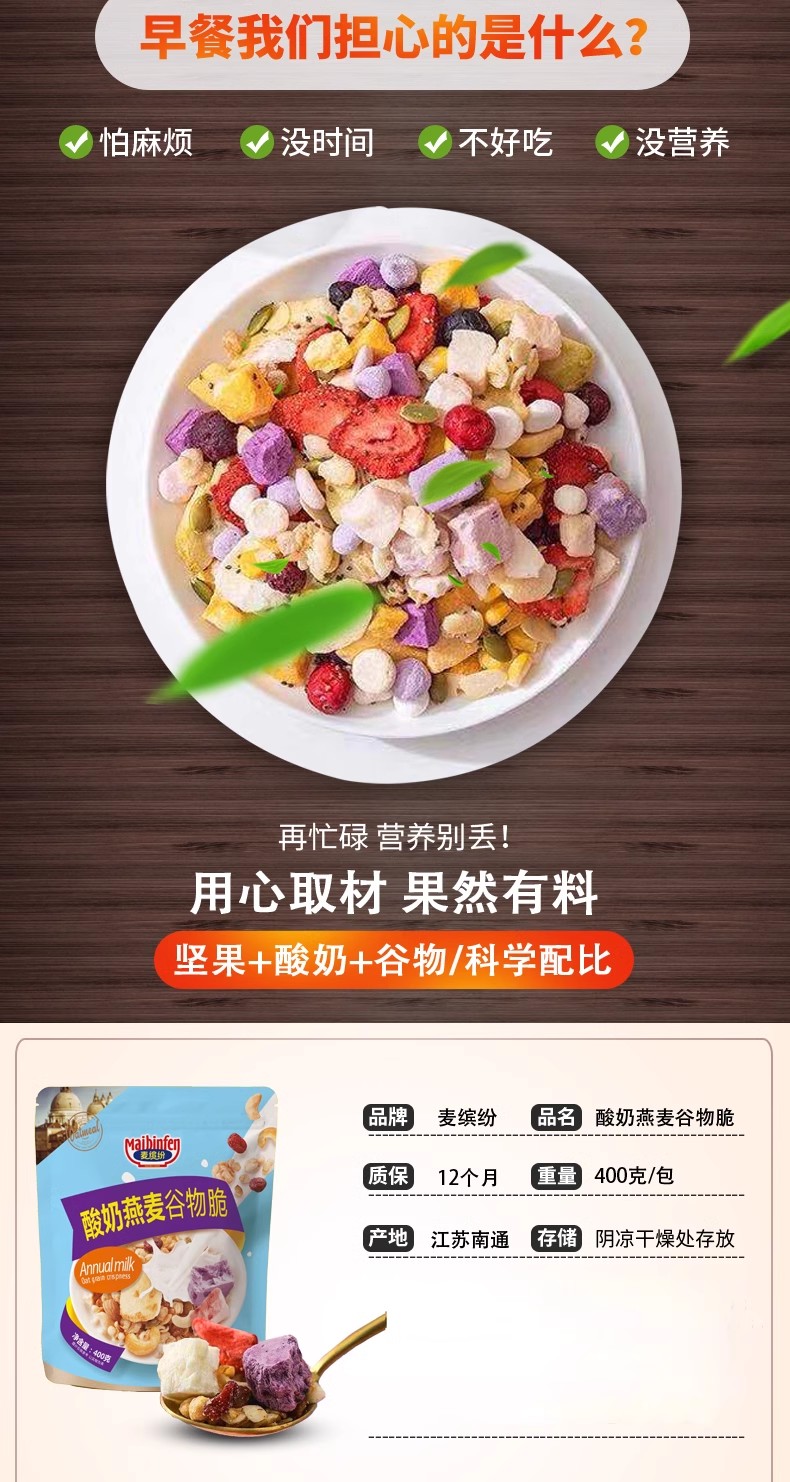 麦缤纷水果坚果谷物脆/酸奶谷物脆/玫瑰草莓谷物脆400g