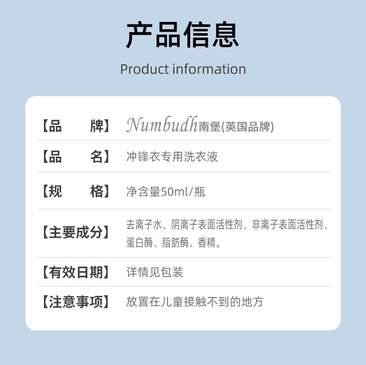 南堡冲锋衣专用洗衣液50ml