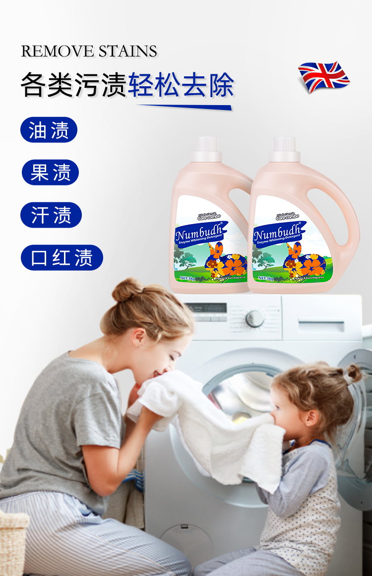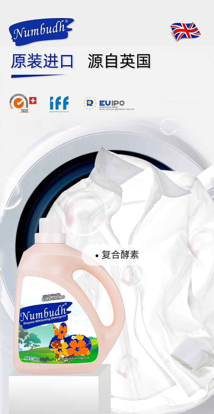 Numbudh南堡酵素净白洗衣液3kg+南堡护衣留香珠 爱丁堡樱花蜜桃260g