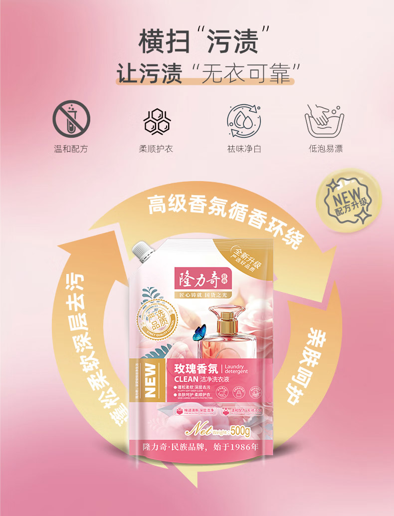 名称:隆力奇玫瑰香氛洁净洗衣液500g