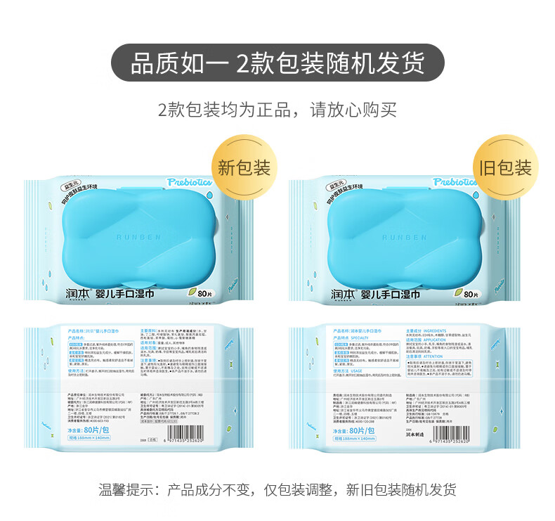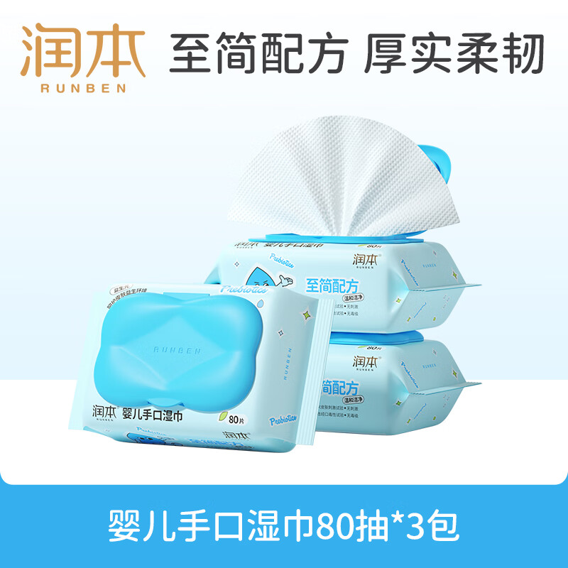 润本婴儿手口湿巾80片三包装 80抽×3包(240抽)