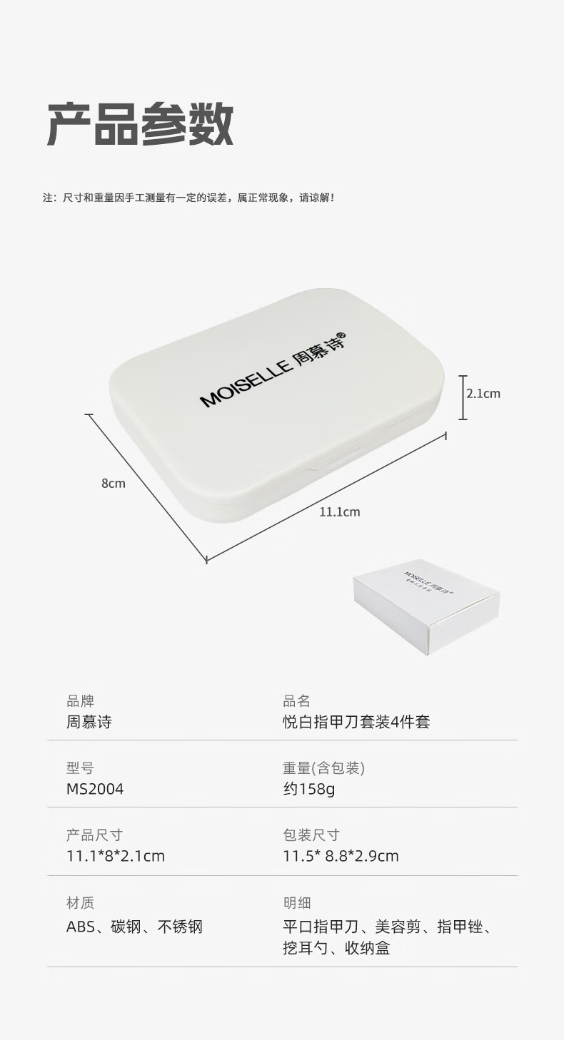 明细:平口指甲刀、美容剪、指甲锉、挖耳勺、收纳盒