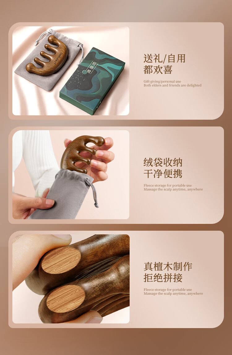 Creative Art-黑金檀木梳-A6202-无柄款+绿檀木牛角梳+礼盒