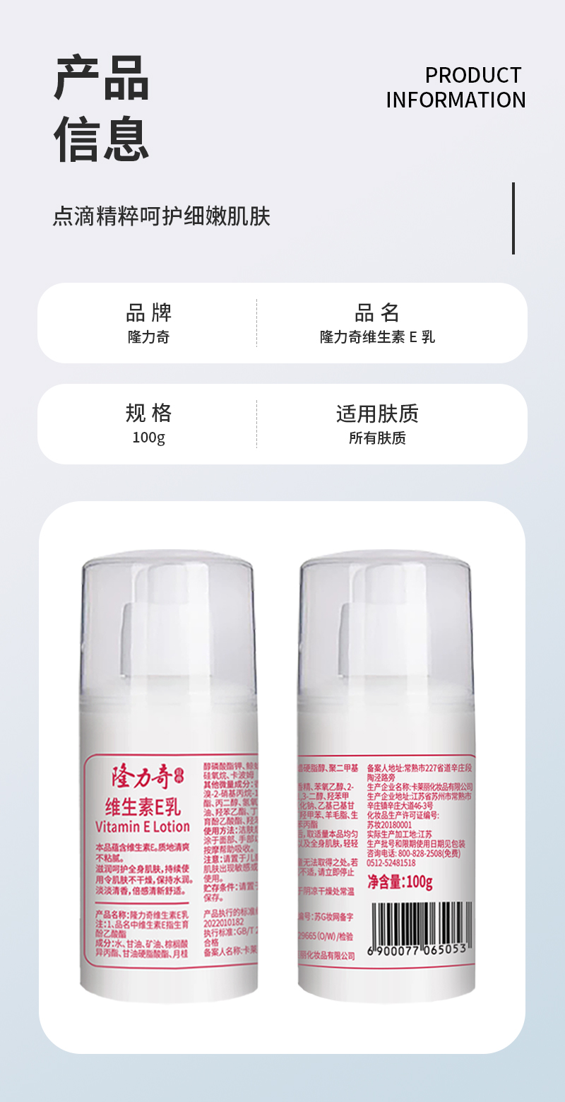 名称: 隆力奇维生素E乳 保湿滋润防干燥 花香型 100g